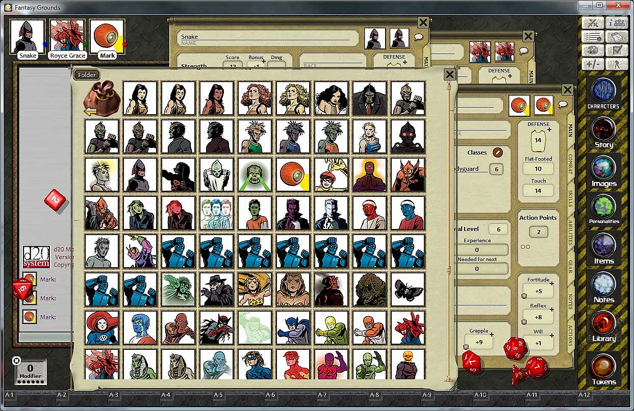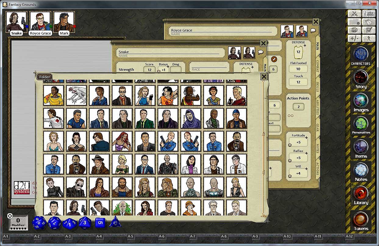 Note: The d20 Modern ruleset was used for the screenshots. That ruleset with custom extension requires a separate purchase. The portraits and tokens are usable with any ruleset.