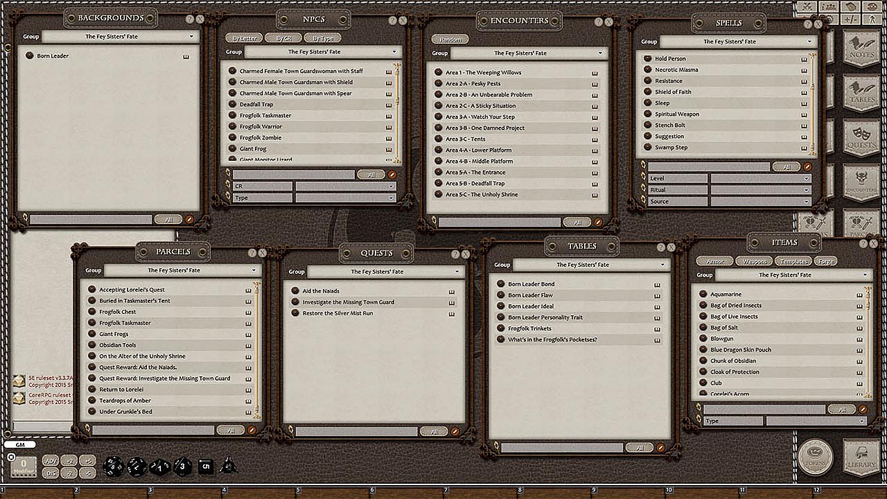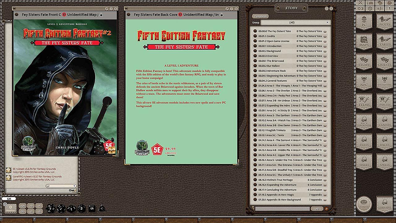Requires: An active subscription or a one time purchase of a Fantasy Grounds Full or Ultimate license and the included 5E Compatible ruleset.