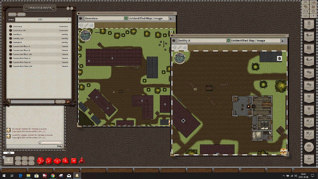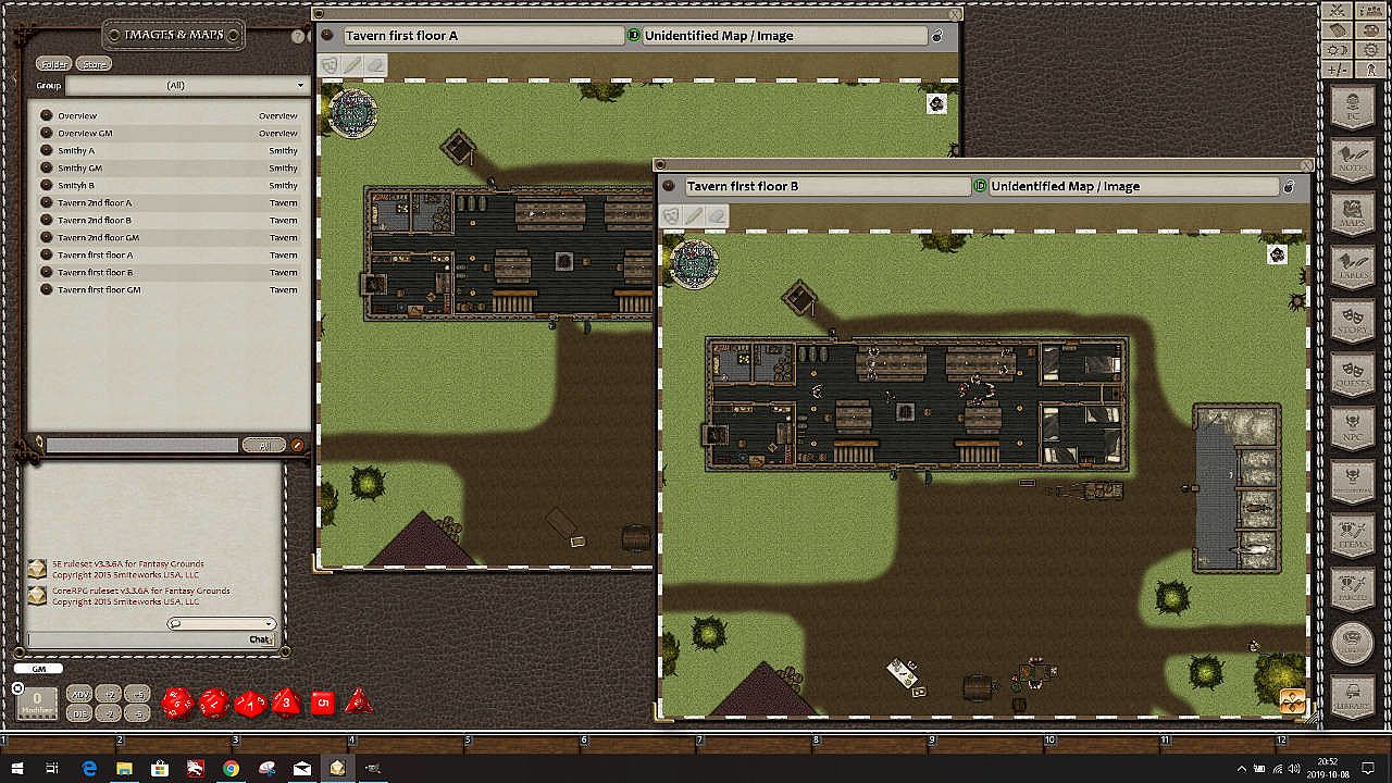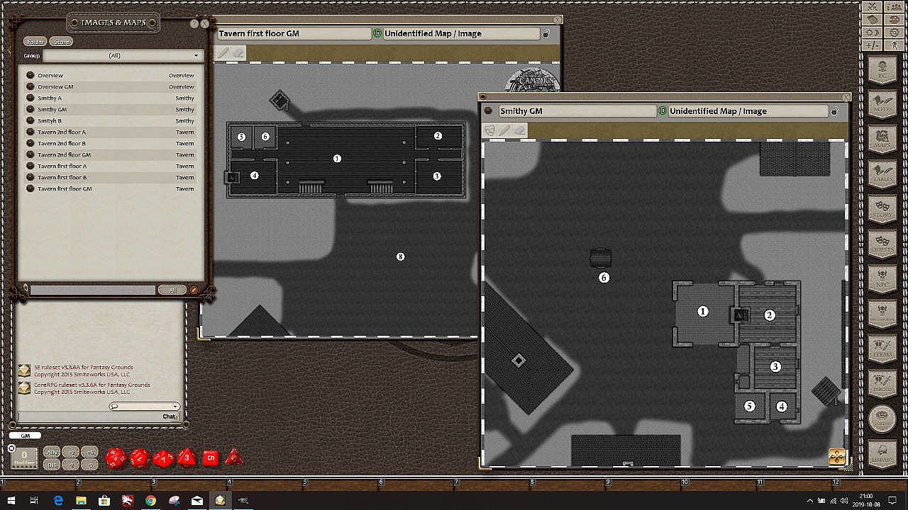 The tavern has two floors and the smithy has one. Three of the maps have versions with or without people.