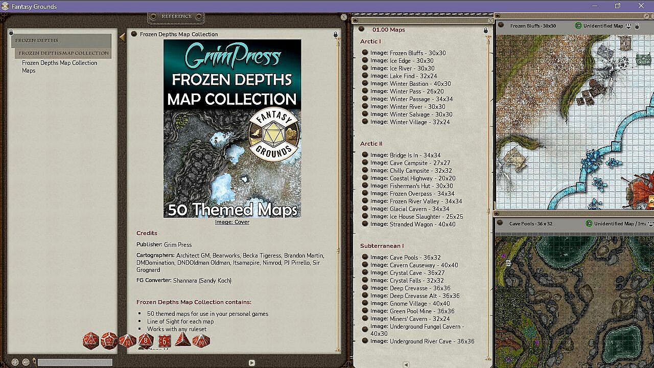 Frozen Depths Map Collection contains 50 encounter maps that you can easily drop into your long-running campaigns, suitable for any arctic or cave area. Each map takes advantage of Dynamic Lighting & Effects.