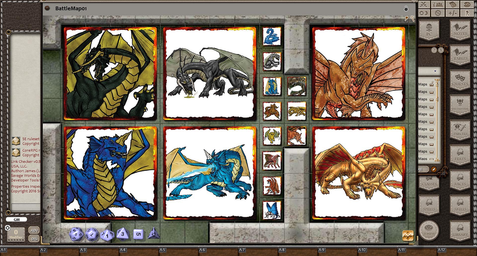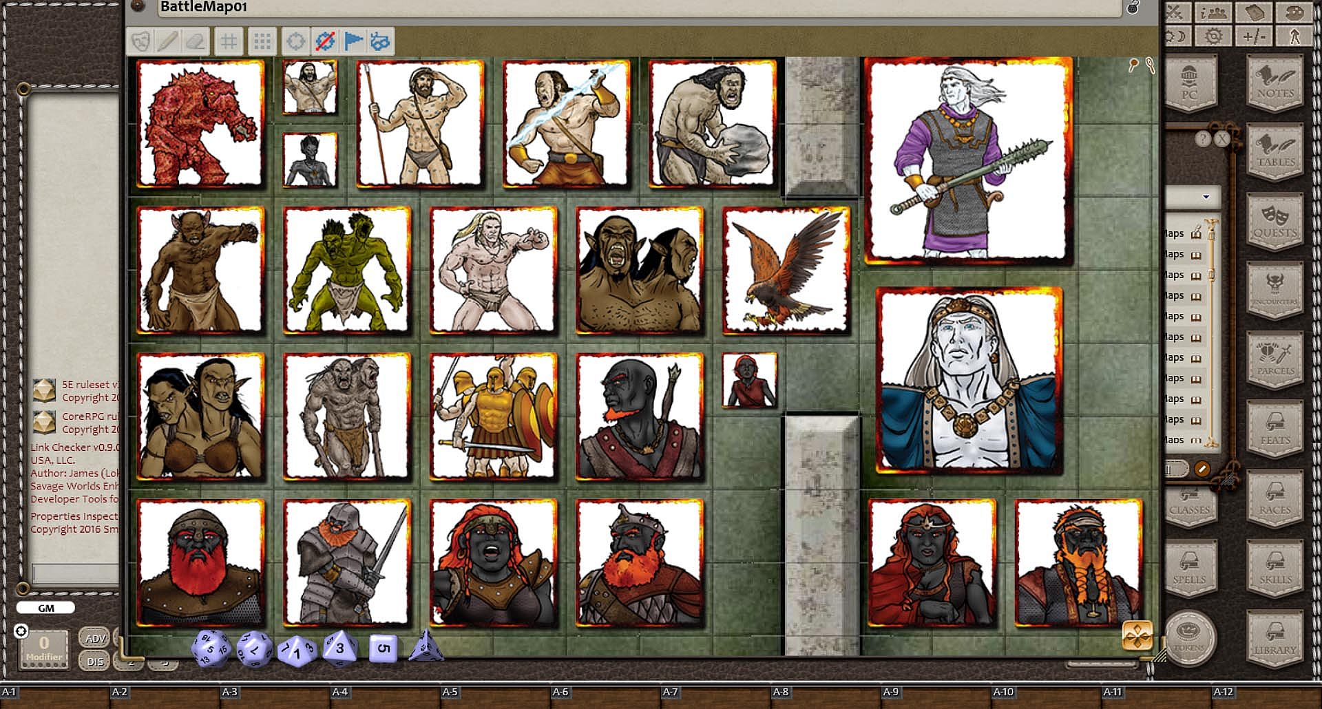 This product contains over 200 tokens in a base 70mm format (for Medium-sized) all converted and optimized for online gaming with software like Fantasy Ground. Produced by artist Claudio Pozas and Fiery Dragon Productions, these tokens are framed in a fiery border and can be resized for different map scales and/or software. The tokens are sorted and scaled into different size categories, and are convered to PNG files for optimal online use.