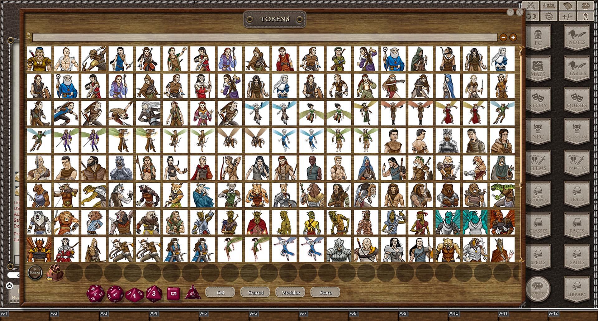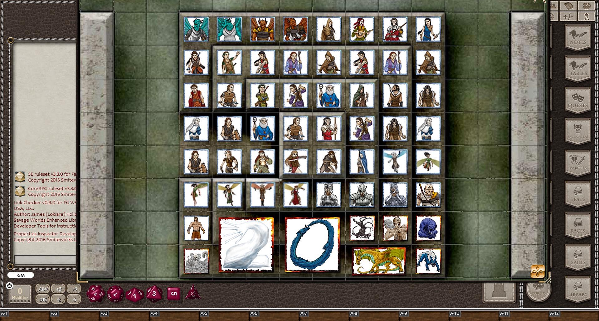 This product contains over 450 tokens in a base 70mm format (for Medium-sized), and over 150 portraits, all converted and optimized for online gaming with software like Fantasy Ground. Produced by artist Claudio Pozas and Fiery Dragon Productions, these tokens are framed in a fiery border and can be resized for different map scales and/or software. The tokens are sorted and scaled into different size categories, and are convered to PNG files for optimal online use.