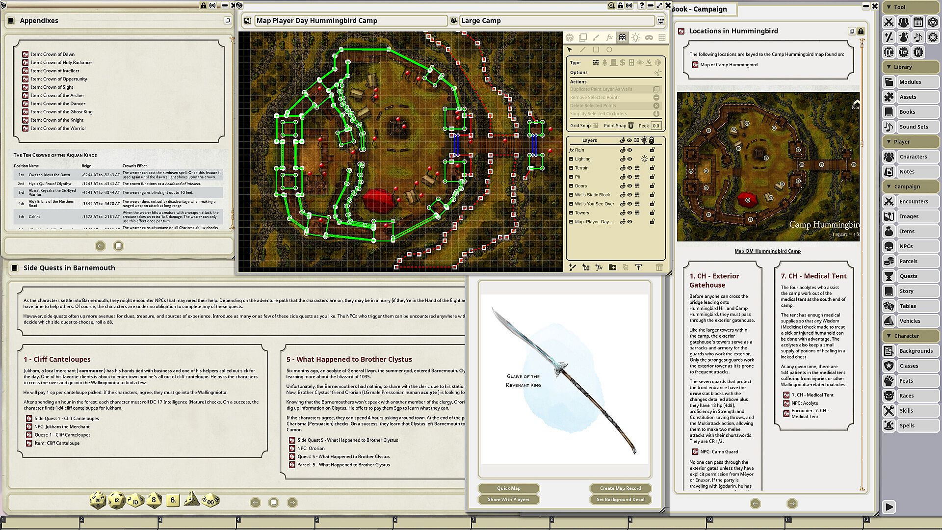 • All book assets and information fully integrated, including new maps for the City of Barnemouth, the Hex Map for Ayas Kelren, and a oversized Swamp Map for Encounters.
