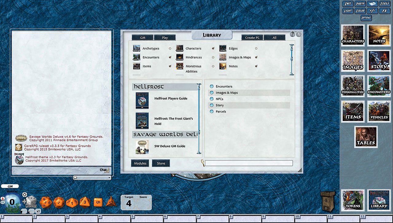Requirements: An active subscription or a one time purchase of a Fantasy Grounds Full or Ultimate license and a one time purchase of the Savage Worlds ruleset.