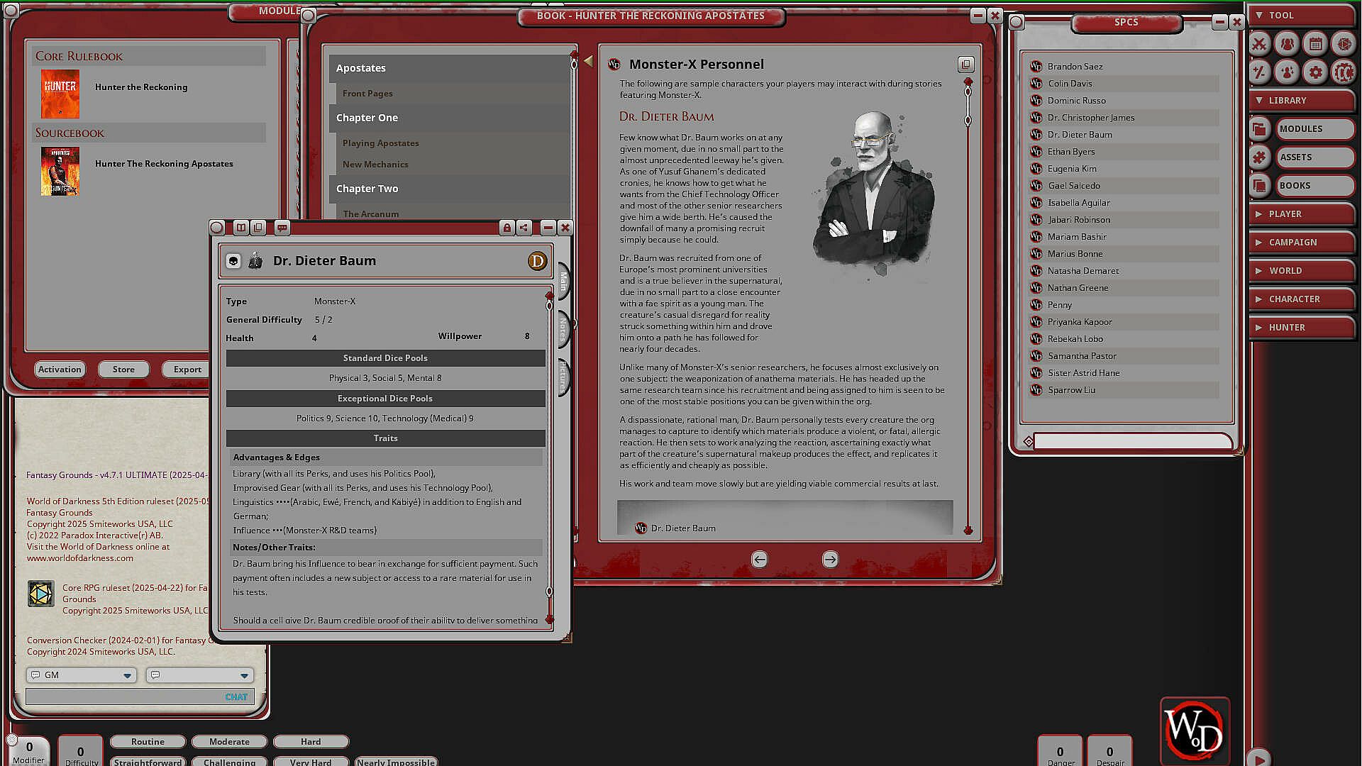 Fantasy Grounds - Hunter: The Reckoning - Apostates - about the game