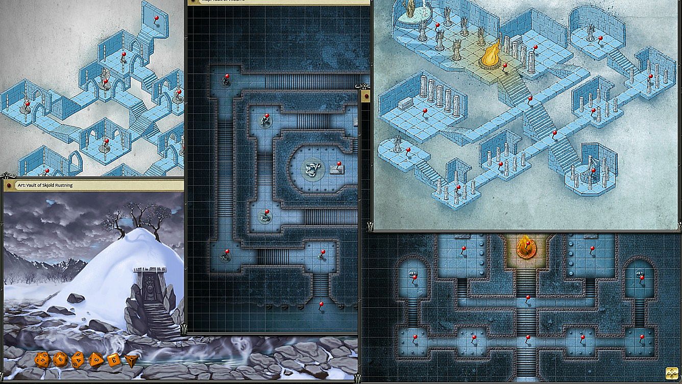 - 5 full-sized dungeon adventures including top-down and isometric cartography