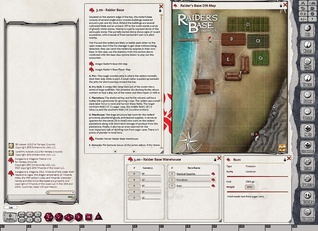 Requirements: An active subscription or a one time purchase of a Fantasy Grounds Full or Ultimate license and the included 5E ruleset.