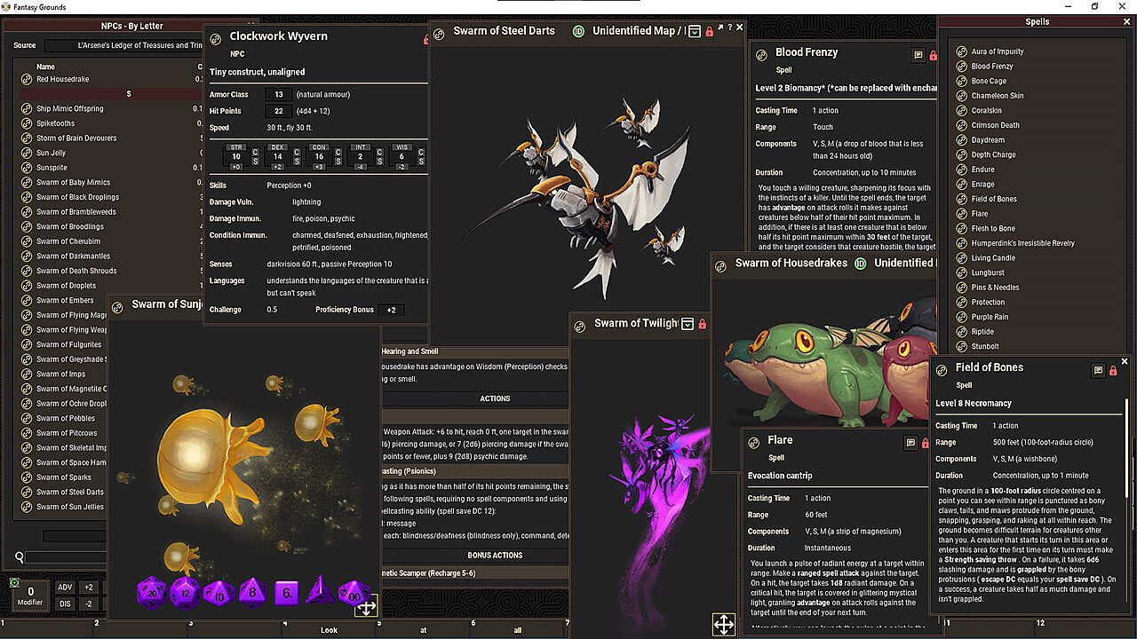 Over 40 new creatures , including a plethora of swarms to be used by the new Swarmslinger Tamer subclass.
