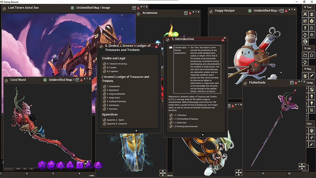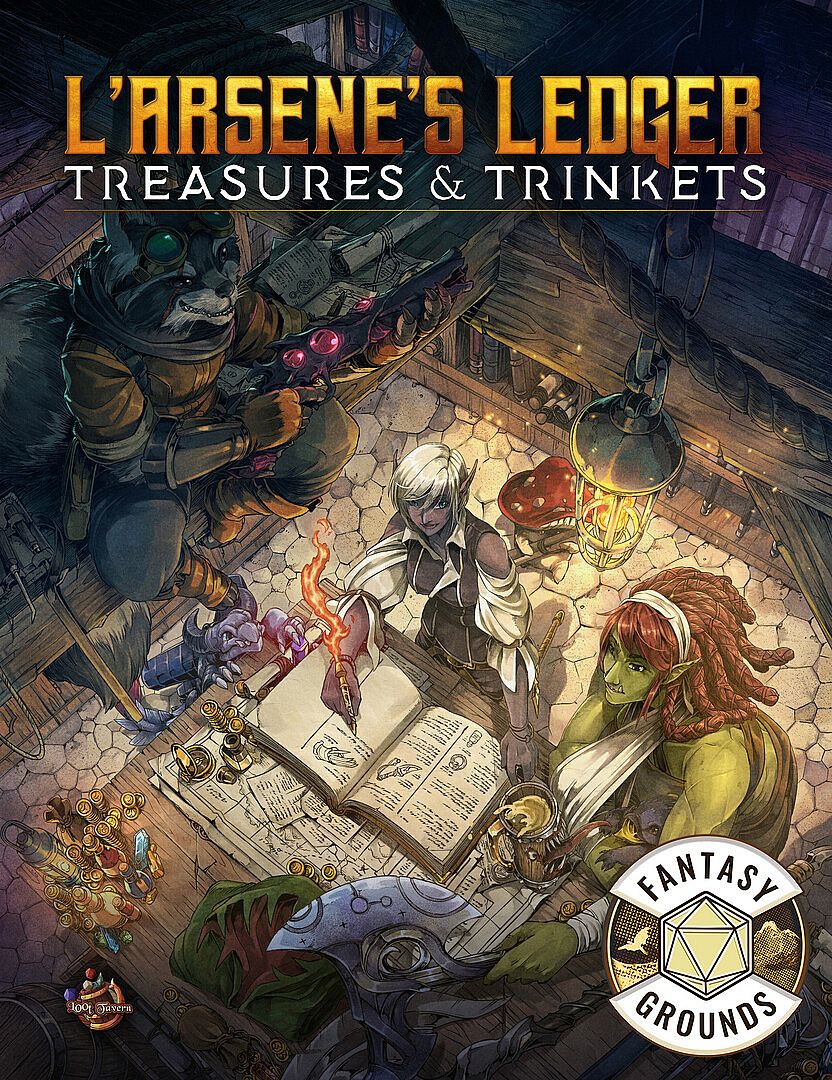 L'Arsene's Ledger of Treasure and Trinkets is more than just a product adapted from the 400-page 5th-edition tome. It is a world-enriching sourcebook filled with arcane instruments and wondrous weapons. It is a guidebook for GMs and players on building balanced magic items. It is bursting with art, subclasses, familiars, spells, crafting recipes, and the dark, jocular whimsy for which the Loot Tavern is infamous.