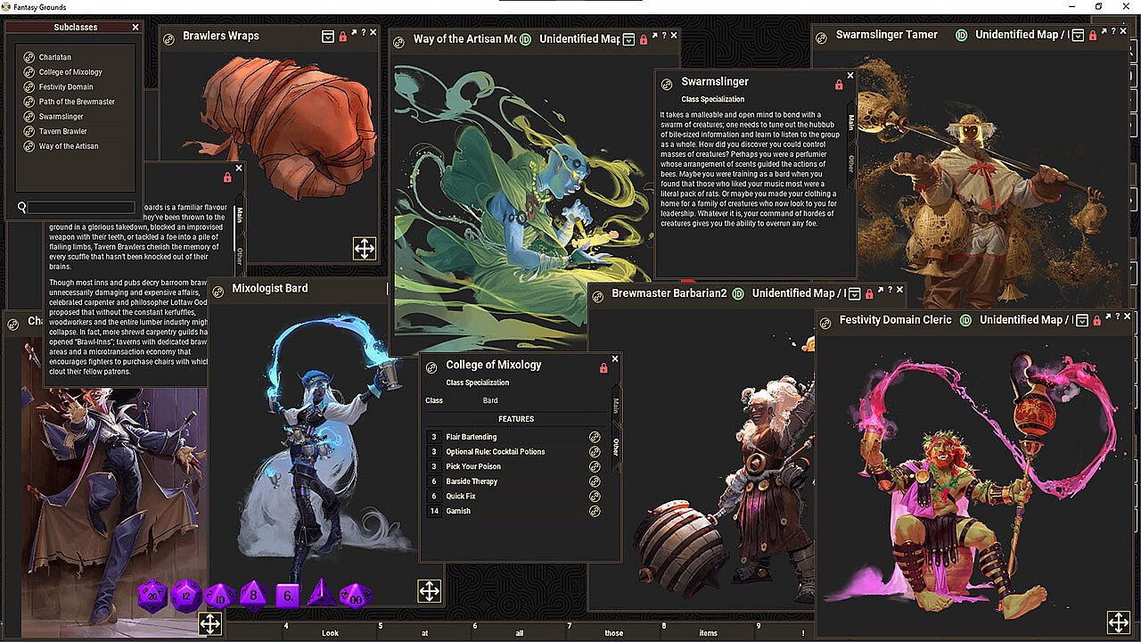 7 new subclasses! Cause a ruckus with the Tavern Brawler Fighter, or put on a show with the College of Mixology Bard.