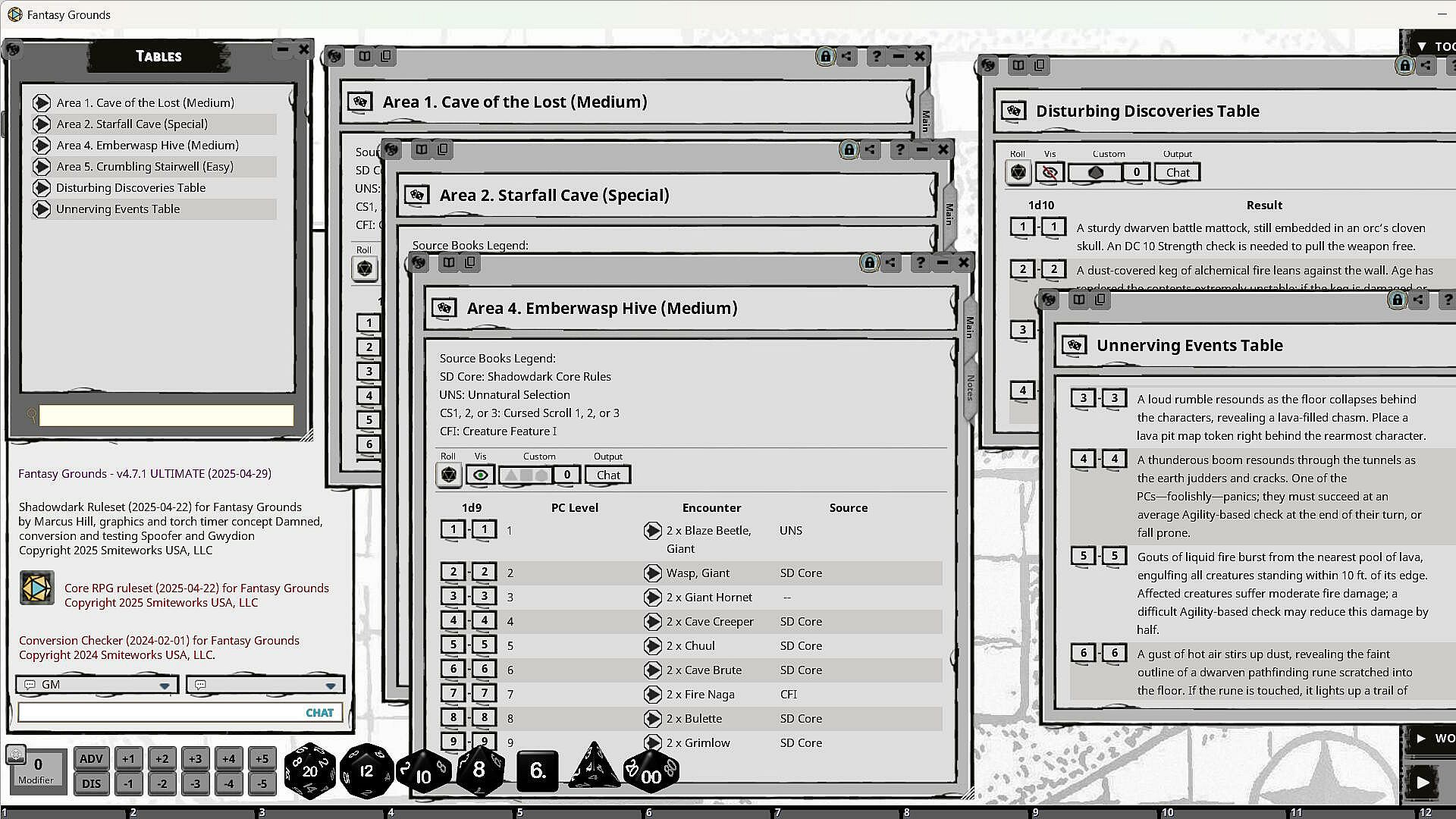Products from Bolwerk Publishing do not use A.I. 'art', A.I.-generated writing, or A.I. assistance/prompts of any kind. All Dungeon Domains are 100% created by humans, for humans. The Fantasy Grounds adaptation of this product does not contain any A.I.-generated images, including NPC tokens. Therefore, combat encounters (which include tokens) are not included. In place of combat encounters, lists of links to NPC records in external sources are provided. Ownership of the original products is required in order to open these NPC records. The following products were used: