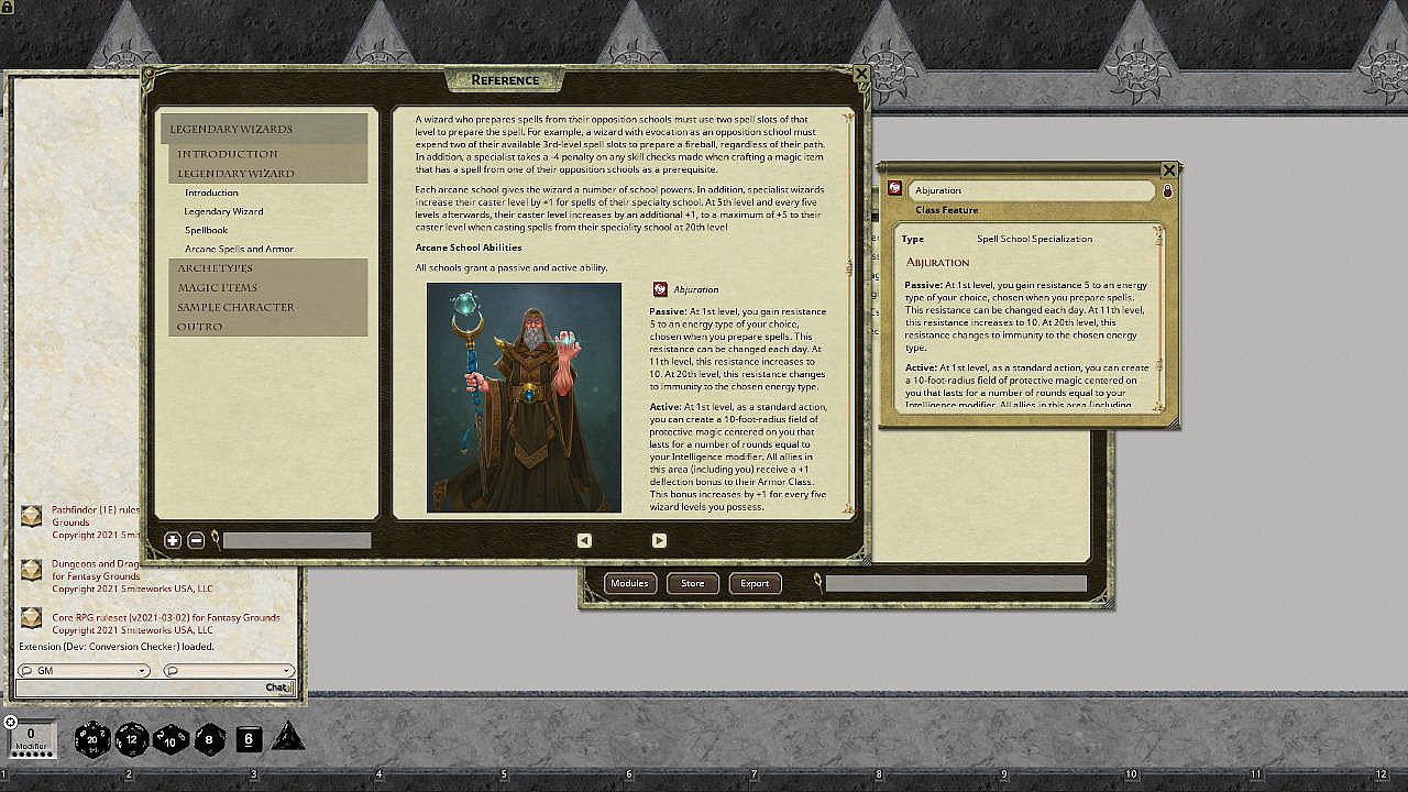 Screenshots may differ from what you see in-game based on the extension and ruleset you have loaded and if you are running Fantasy Grounds or Fantasy Grounds Unity.