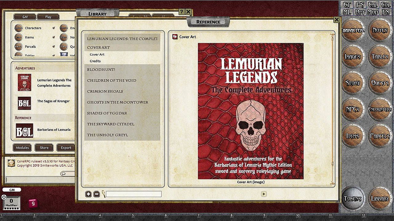 Requires: An active subscription or a one time purchase of a Fantasy Grounds Full or Ultimate license and a one time purchase of the Barbarians of Lemuria ruleset.