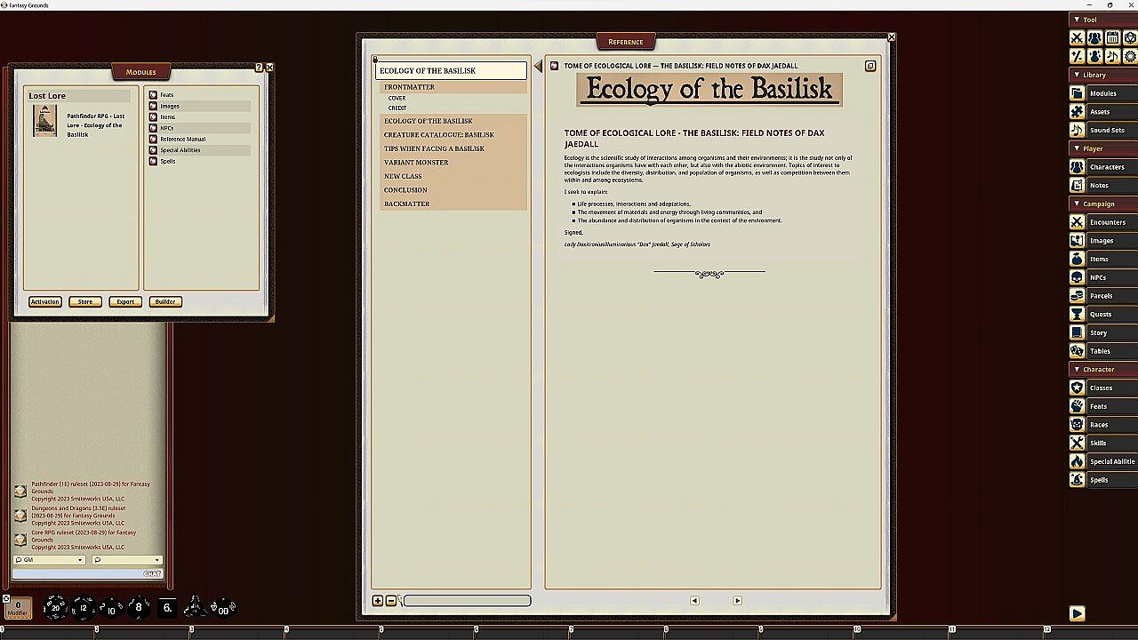 Before you start looking for a cheap Fantasy Grounds - Lost Lore: Ecology of the Basilisk CD Key, take a moment to check the essentials. Developed by SmiteWorks USA, LLC. PC released date: 03 Oct 2023. Genres: Strategy, Indie, RPG. Categories: Multi-player, Family Sharing, Co-op, Single-player, Downloadable Content, Cross-Platform Multiplayer, Shared/Split Screen Co-op, Shared/Split Screen, Online Co-op, LAN Co-op.