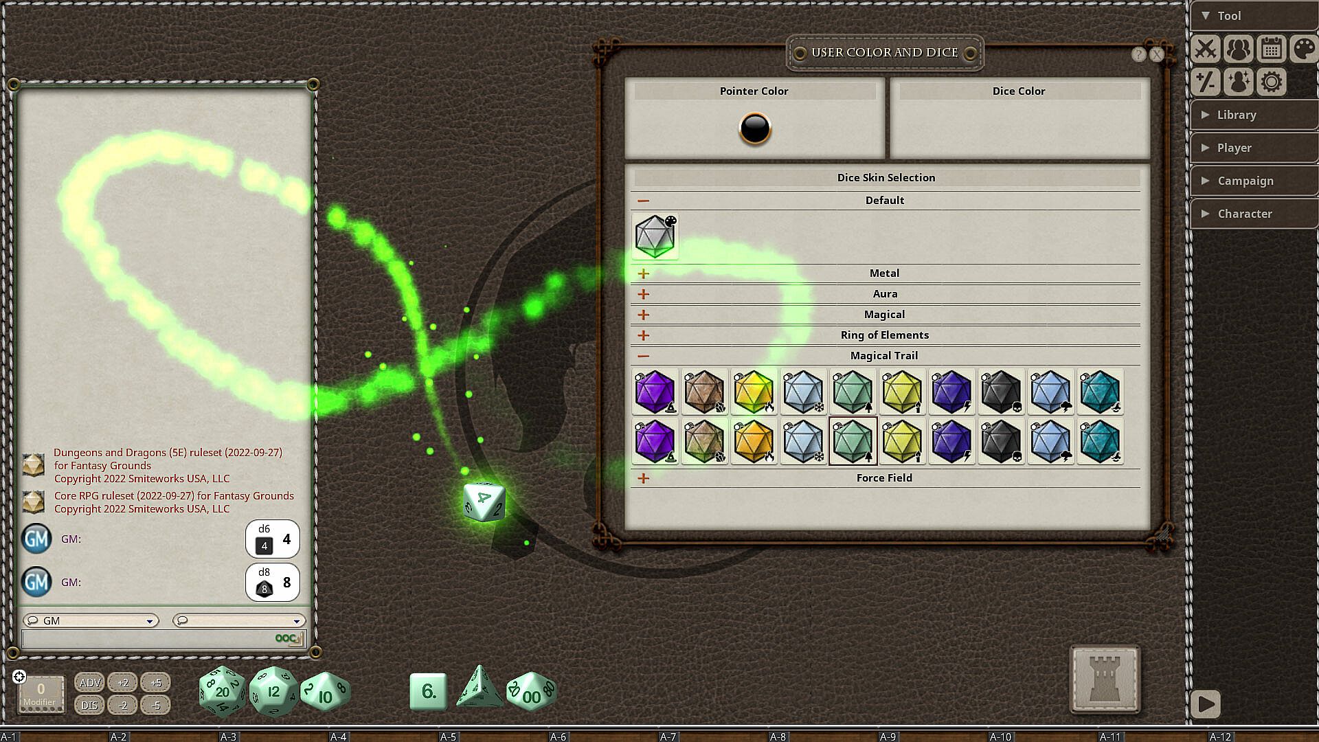 Add custom dice to your virtual tabletop and roll with style. These dice come in a variety of different colors and textures that work with new animated effects that show up when you roll them. This pack includes the following 20 dice: