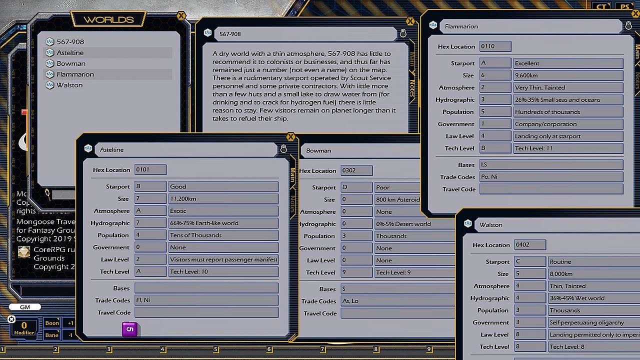 Requires: An active subscription or a one time purchase of a Fantasy Grounds Full or Ultimate license and a one time purchase of the Traveller 2E (Mongoose) ruleset.