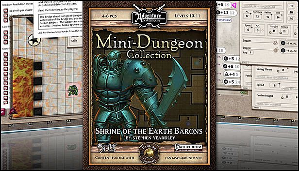 Before you start looking for a cheap Fantasy Grounds - Mini-Dungeon #003: Shrine of the Earth Barons (PFRPG) CD Key, take a moment to check the essentials. Developed by SmiteWorks USA, LLC. PC released date: 16 Dec 2016. Genres: Strategy, Indie, RPG. Categories: Multi-player, Family Sharing, Co-op, Downloadable Content, Cross-Platform Multiplayer.