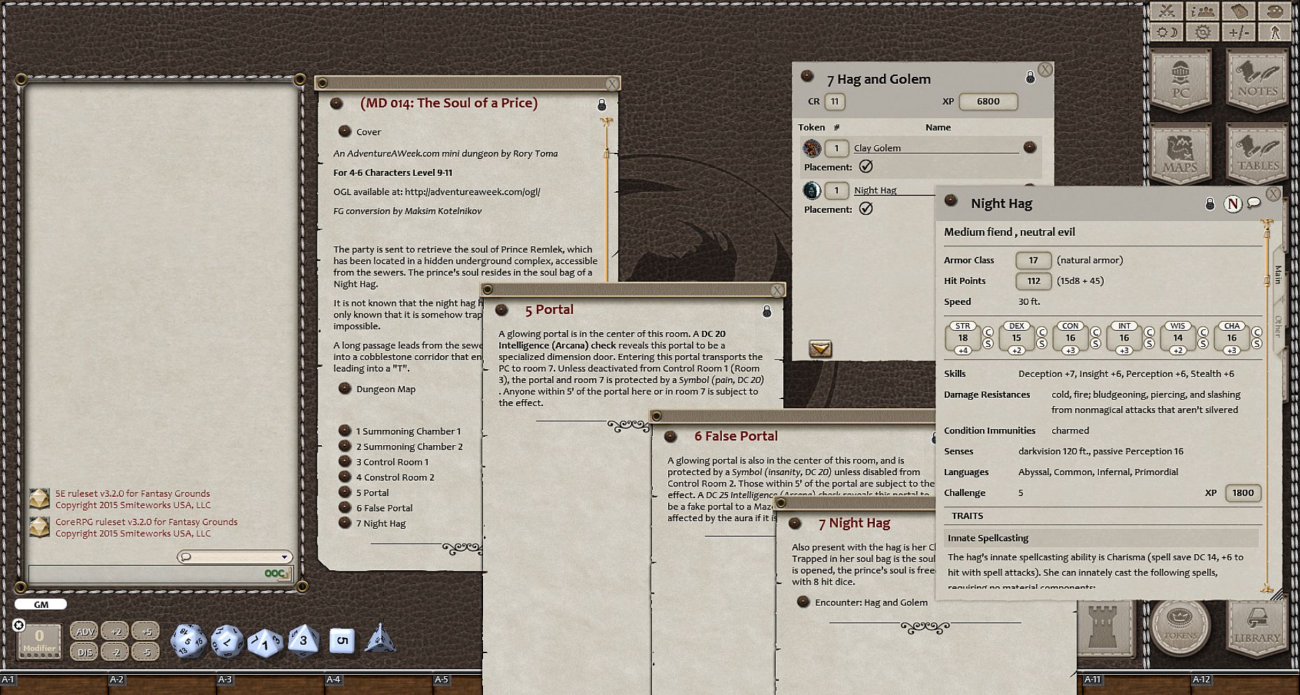 Requires: A Fantasy Grounds full or ultimate license or an active subscription and the included 5E Ruleset.