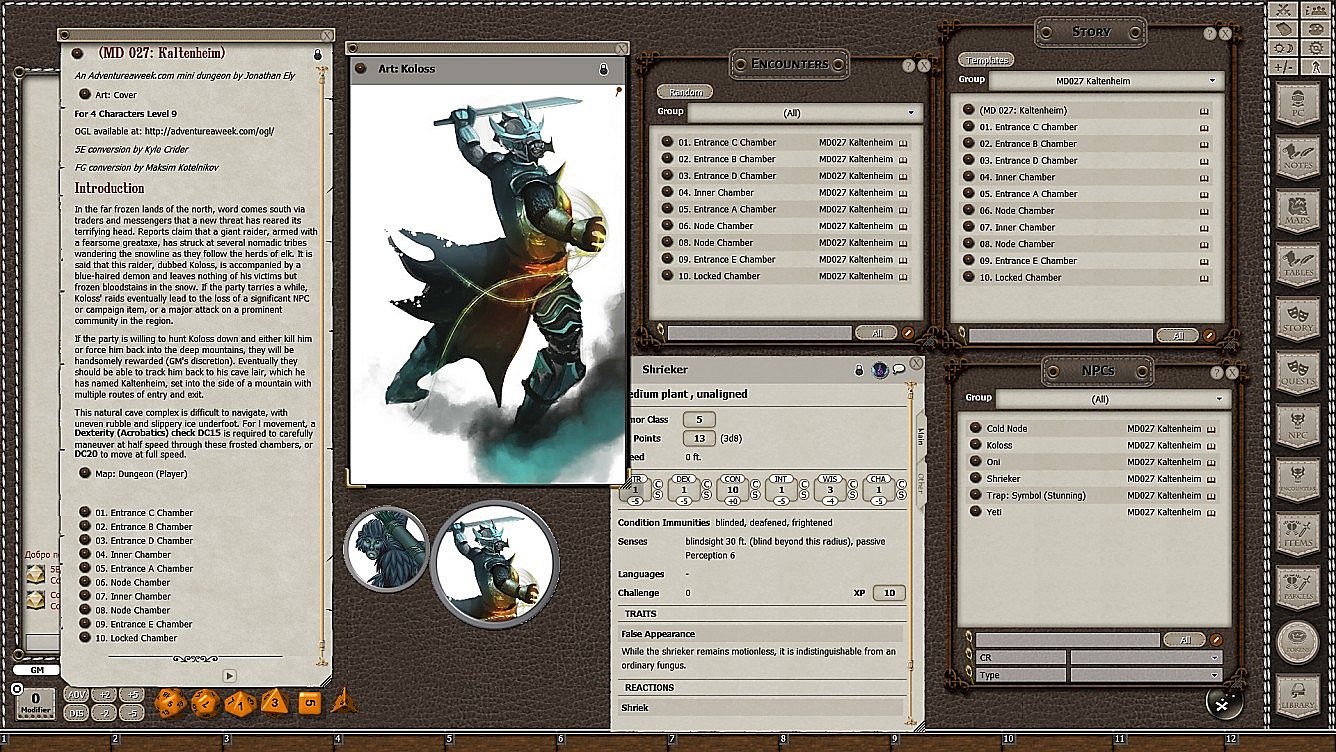 Requires: An active subscription or a one time purchase of a Fantasy Grounds Full or Ultimate license and the included 5E Ruleset.