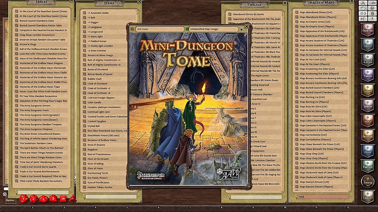 Themed and organized for convenience, the Mini-Dungeon Tome provides setting-neutral fantasy adventures suitable for every party level and size. With all reference material included in a convenient index, this single book holds everything you need for years of adventuring.