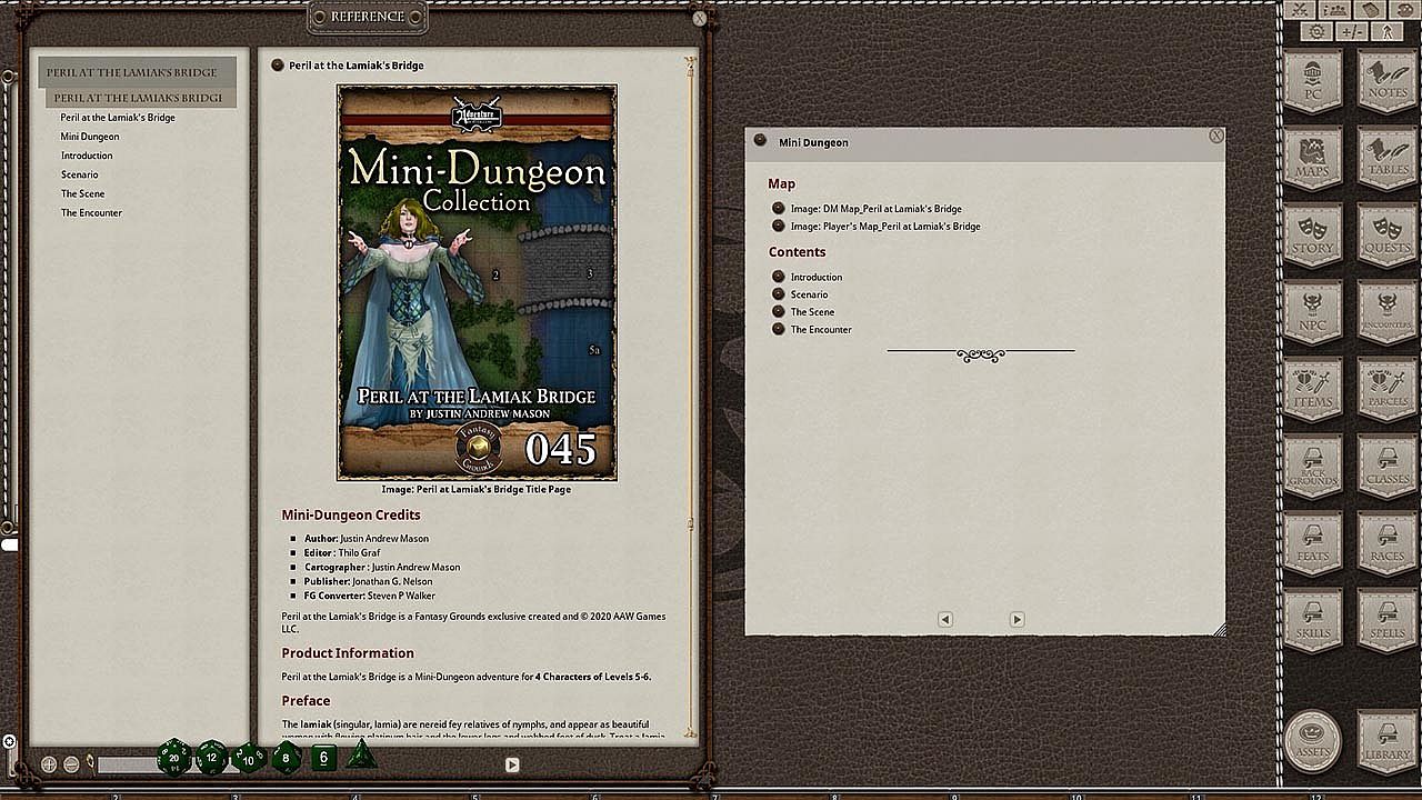 Mini-Dungeons are short, setting-agnostic adventures for 5th Edition which can be easily inserted anywhere in your campaign.This bundle contains five such adventures for use with Fantasy Grounds Classic or Fantasy Grounds Unity (line of sight included).