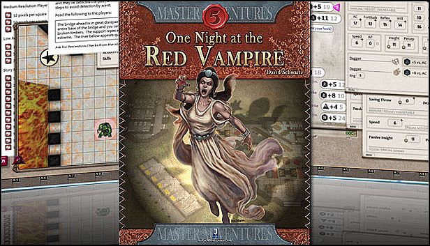 Over a century after adventurers defeated the Red Vampire, the manor house from which the undead count reigned has become an inn and tourist attraction. A welcome relief for weary travelers, the Red Vampire’s Way Inn provides soft beds and warm meals in the otherwise inhospitable Eerie Forest. Yet beneath the inn, the Red Vampire’s legacy is not destroyed, but only contained. Tonight an inquisitive guest will break the seal. It’s up to the PCs to defend the other guests and themselves from the horrors that are released. Can they survive One Night at the Red Vampire?