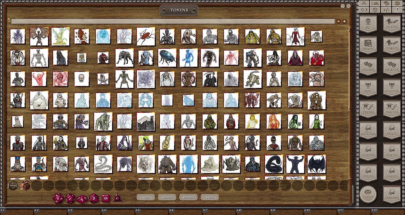 This product contains over 200 tokens in a base 70mm format (for Medium-sized) all converted and optimized for online gaming with Fantasy Ground. Produced by artist Claudio Pozas and Fiery Dragon Productions, these tokens are framed in a fiery border and can be resized for different map scales. The tokens are sorted and scaled into different size categories, and are converted for optimal online use.