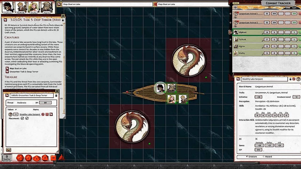 - Tokens for each encounter are all pre-placed in starting locations on the map. You can edit these on the fly.