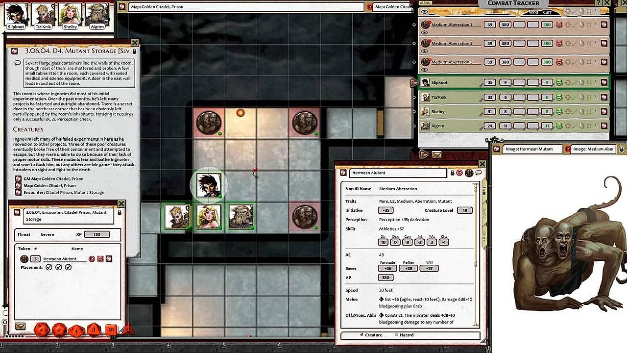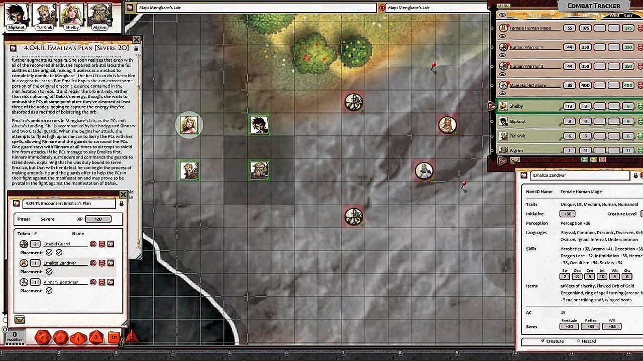 • Tokens for each encounter are all pre-placed in starting locations on the map. You can edit these on the fly.