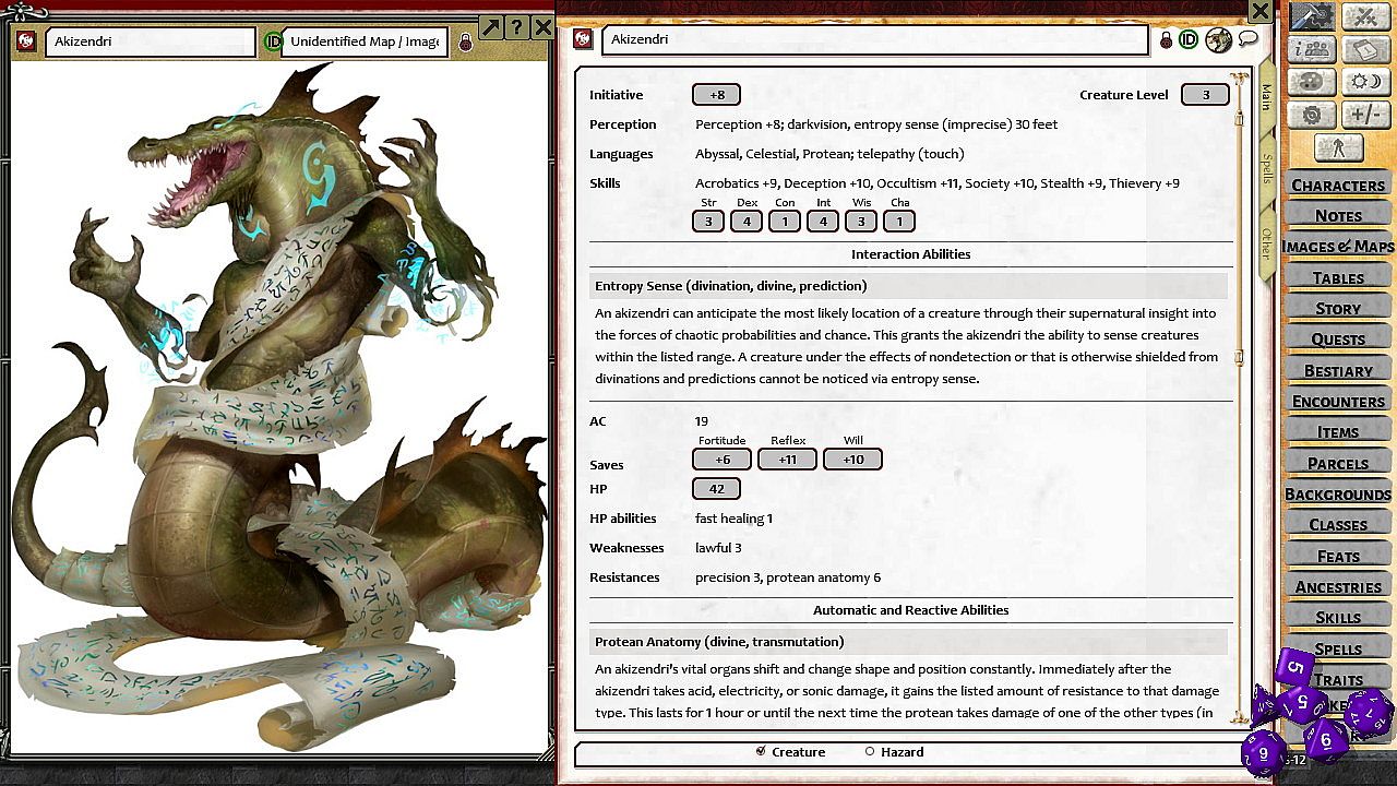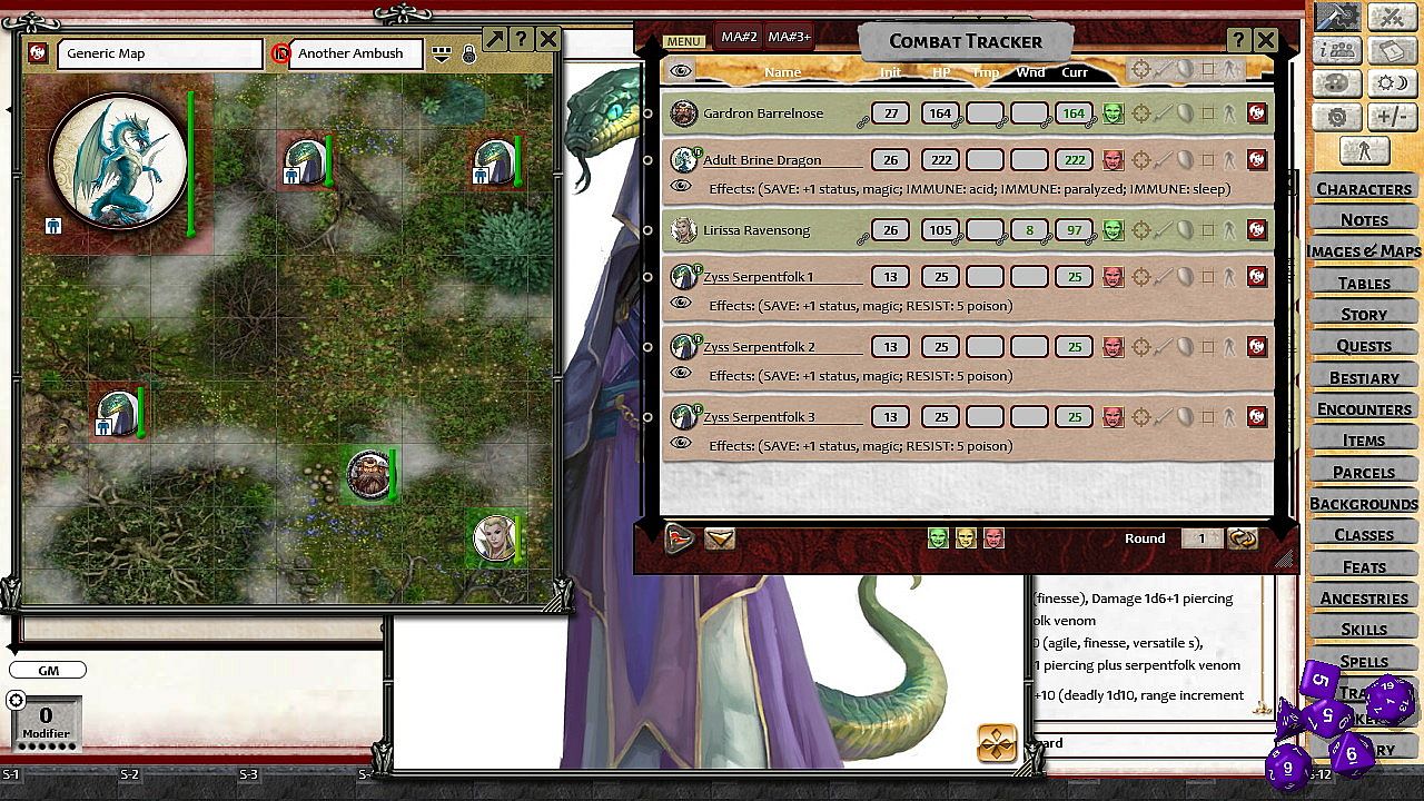 - Tokens for each encounter are all pre-placed in starting locations on the map. You can edit these on the fly.