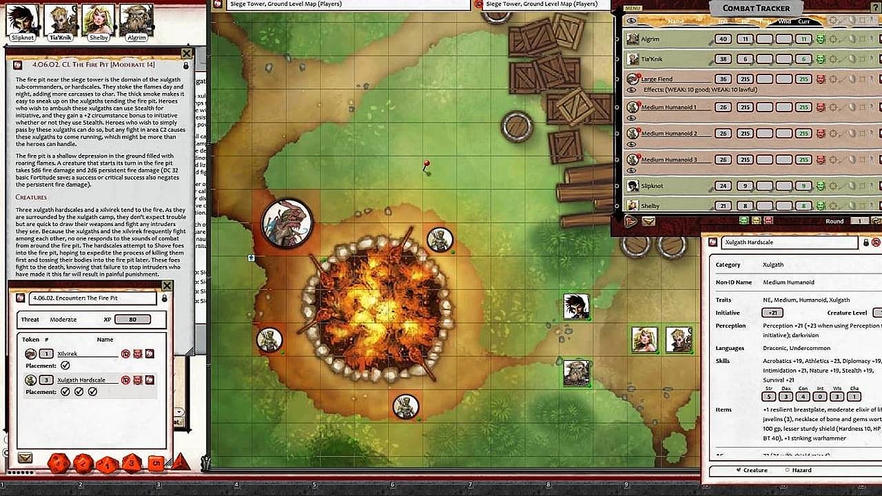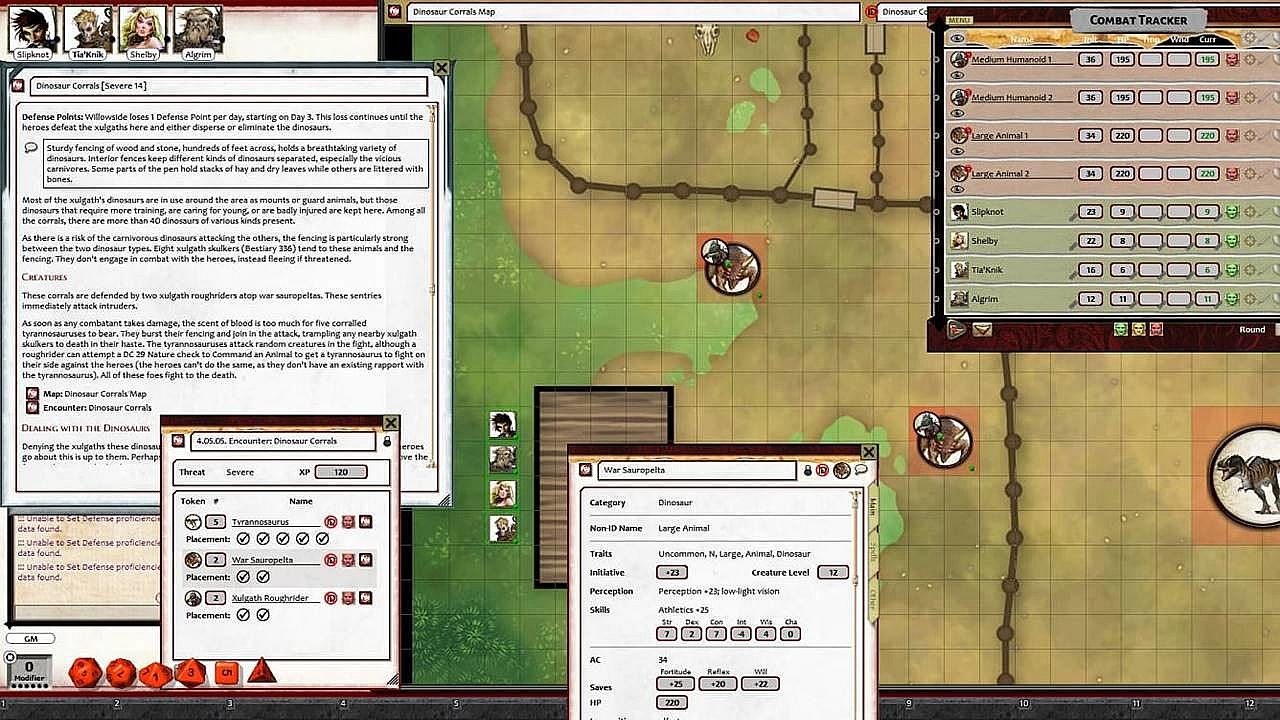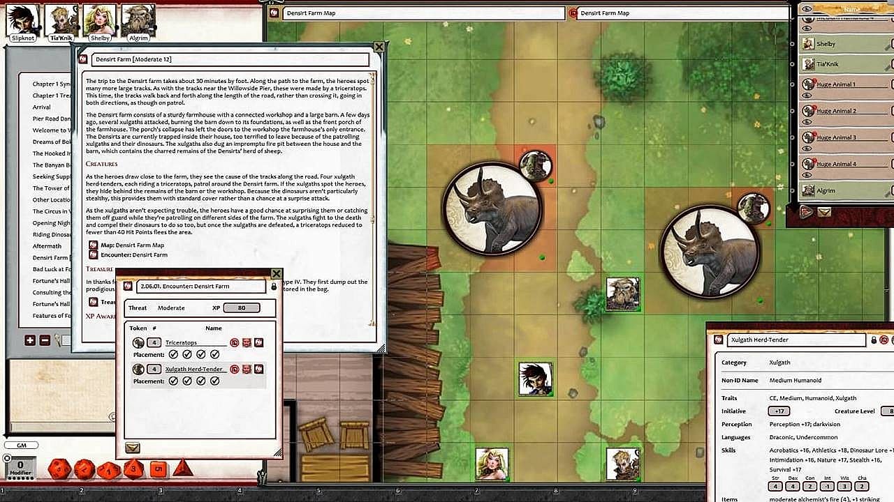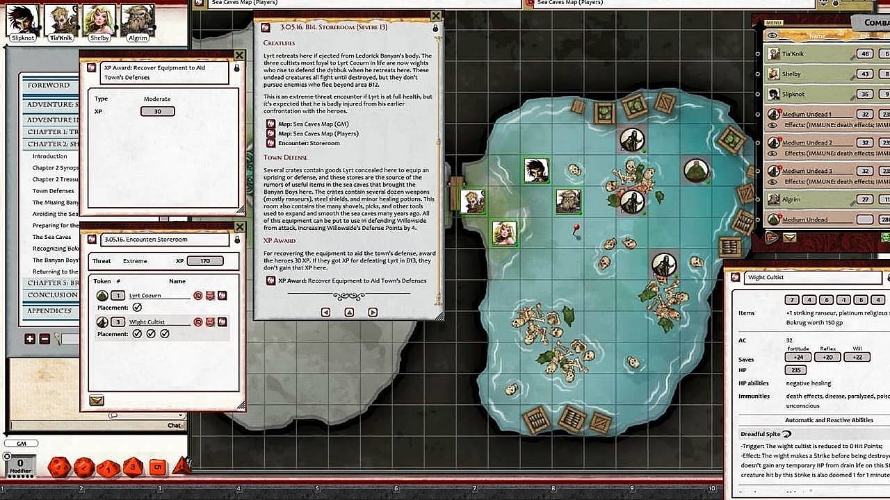 • Tokens for each encounter are all pre-placed in starting locations on the map. You can edit these on the fly.