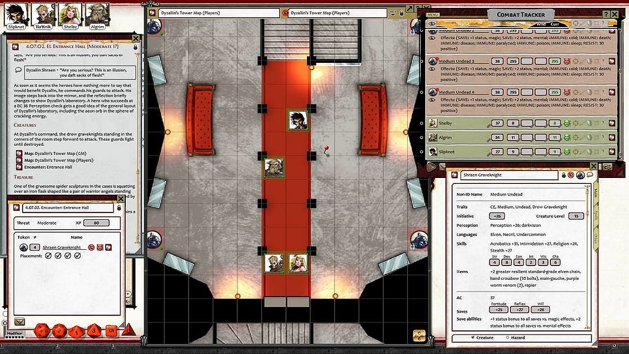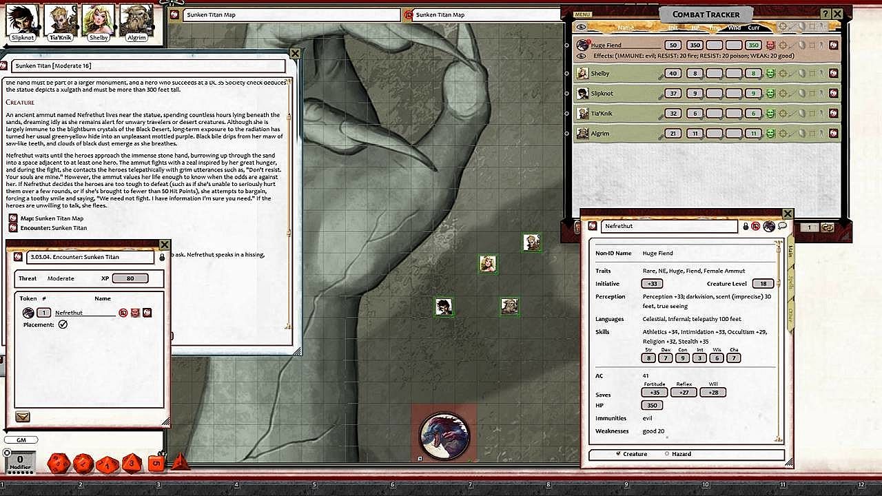 • Tokens for each encounter are all pre-placed in starting locations on the map. You can edit these on the fly.