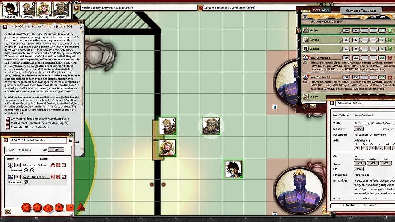 • Tokens for each encounter are all pre-placed in starting locations on the map. You can edit these on the fly.