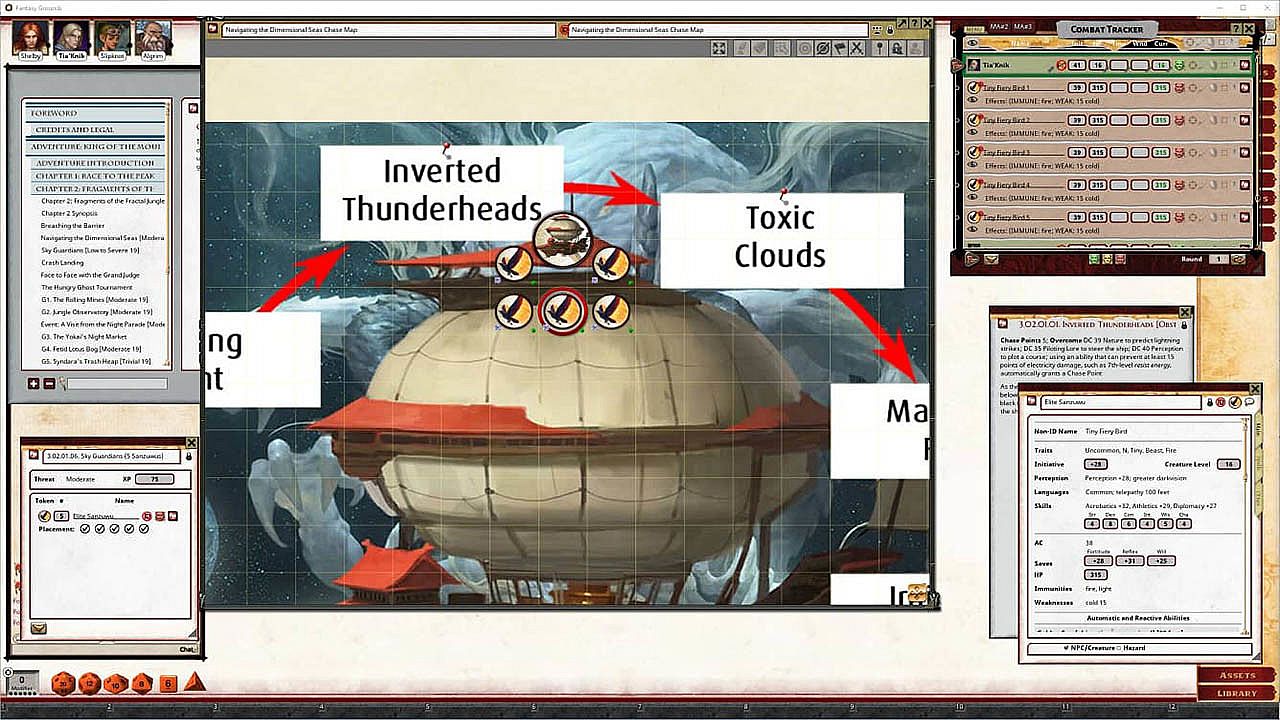 - Tokens for each encounter are all pre-placed in starting locations on the map. You can edit these on the fly.