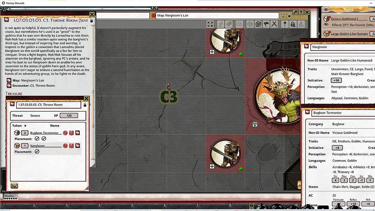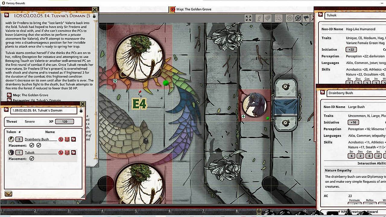 • Tokens for each encounter are all pre-placed in starting locations on the map. You can edit these on the fly.