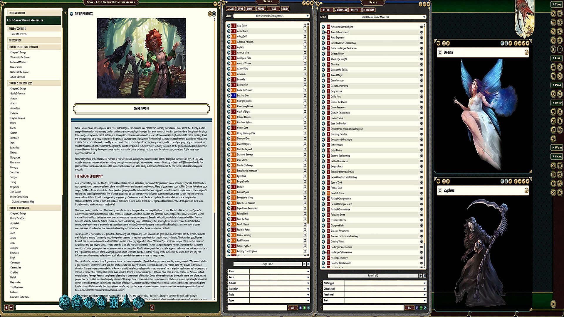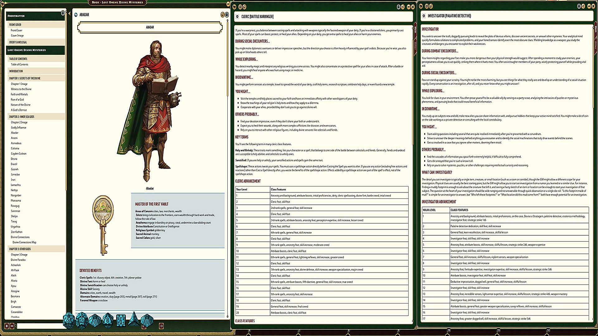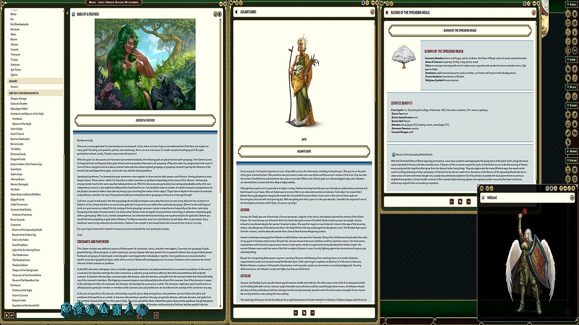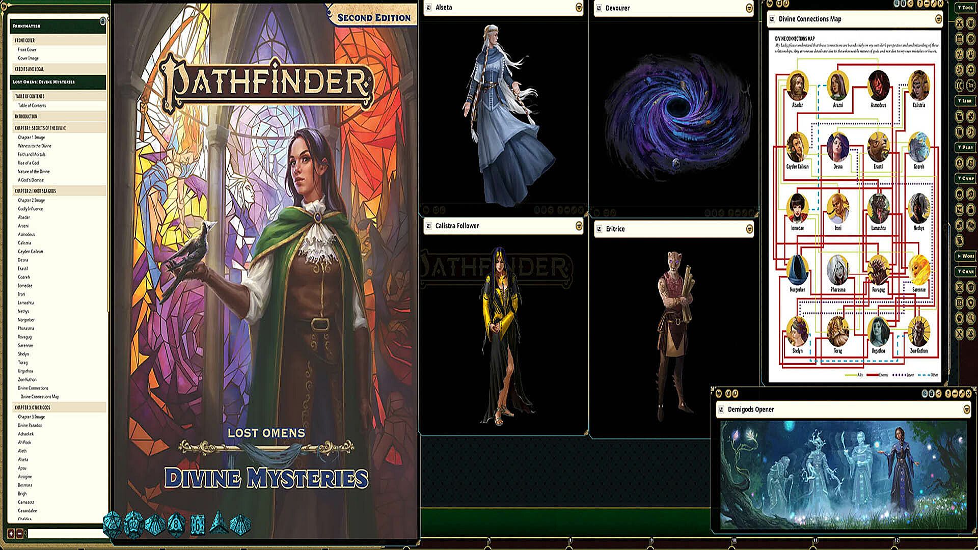 In depth details on the primary deities of Golarion with details on their use for each character within Fantasy Grounds.