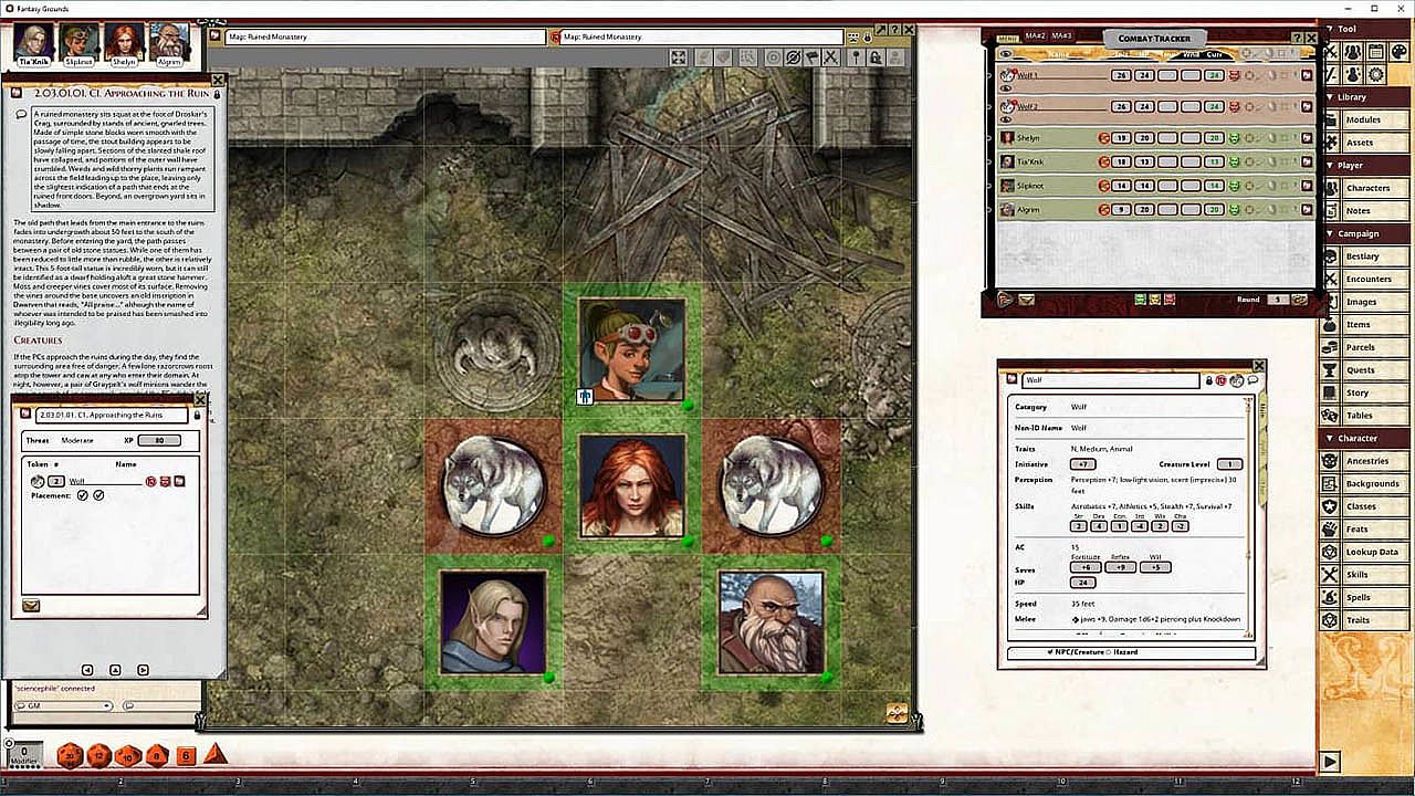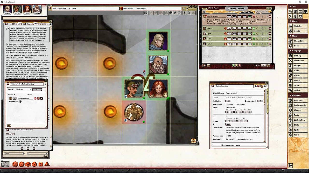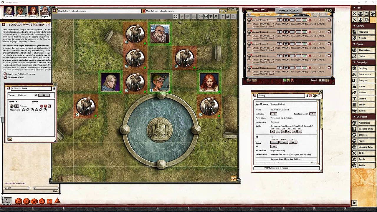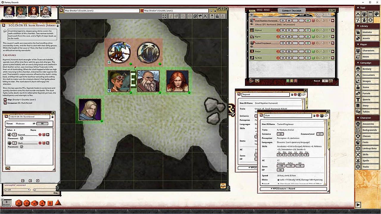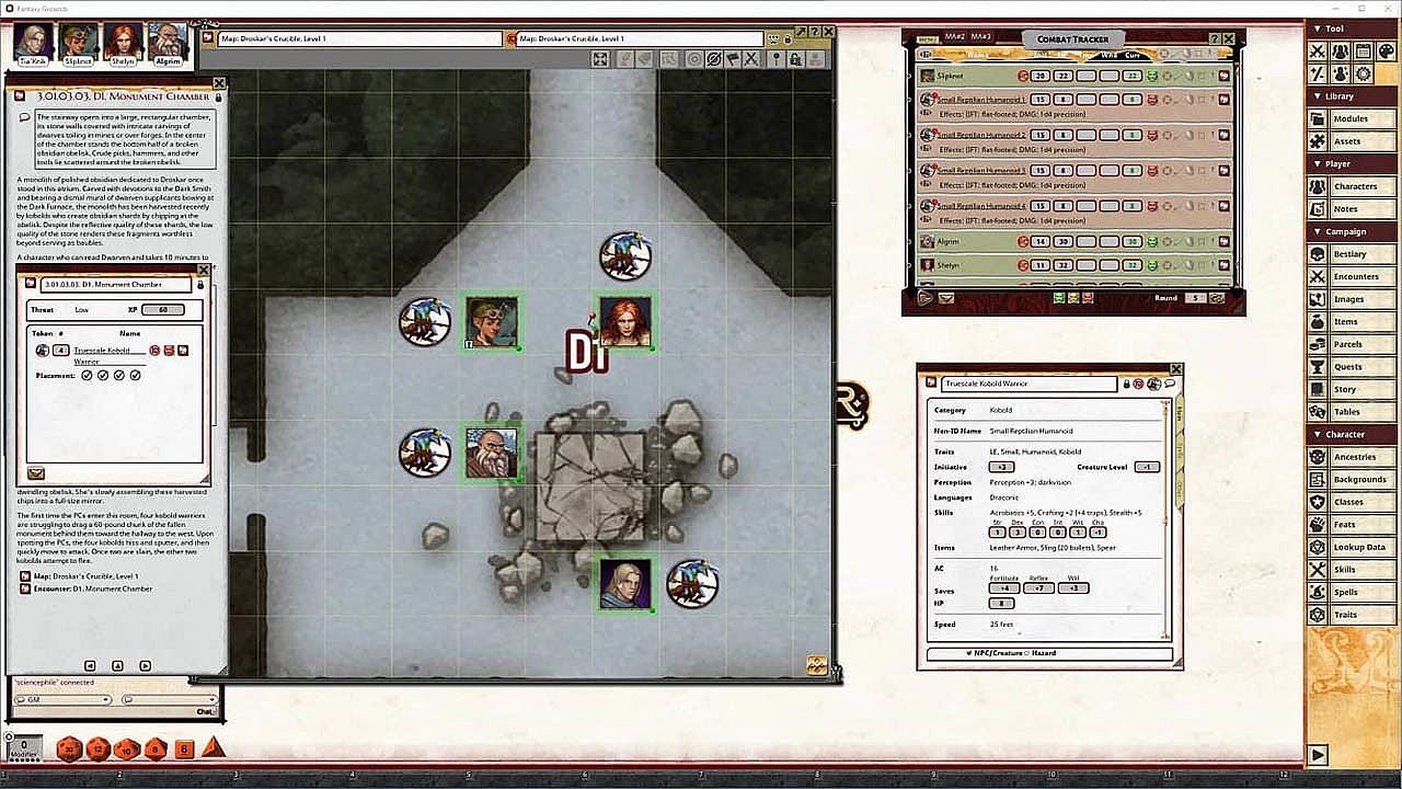 • Tokens for each encounter are all pre-placed in starting locations on the map. You can edit these on the fly.