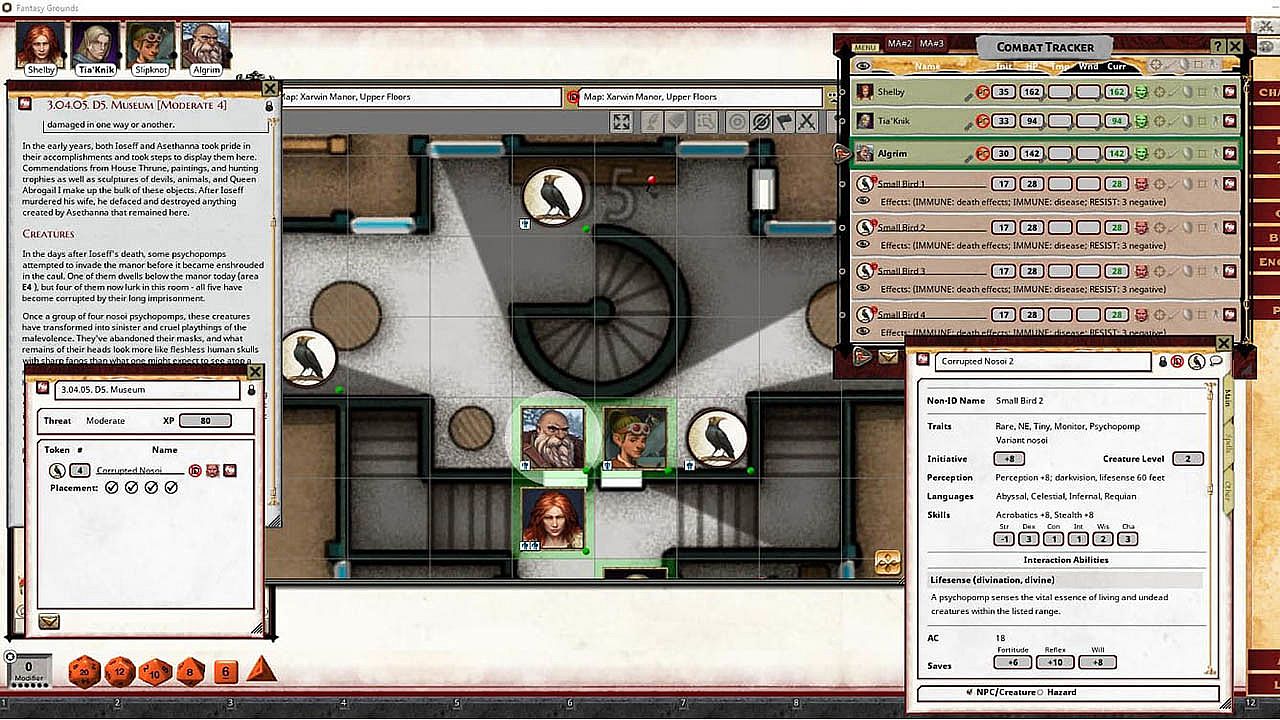 • Tokens for each encounter are all pre-placed in starting locations on the map. You can edit these on the fly.
