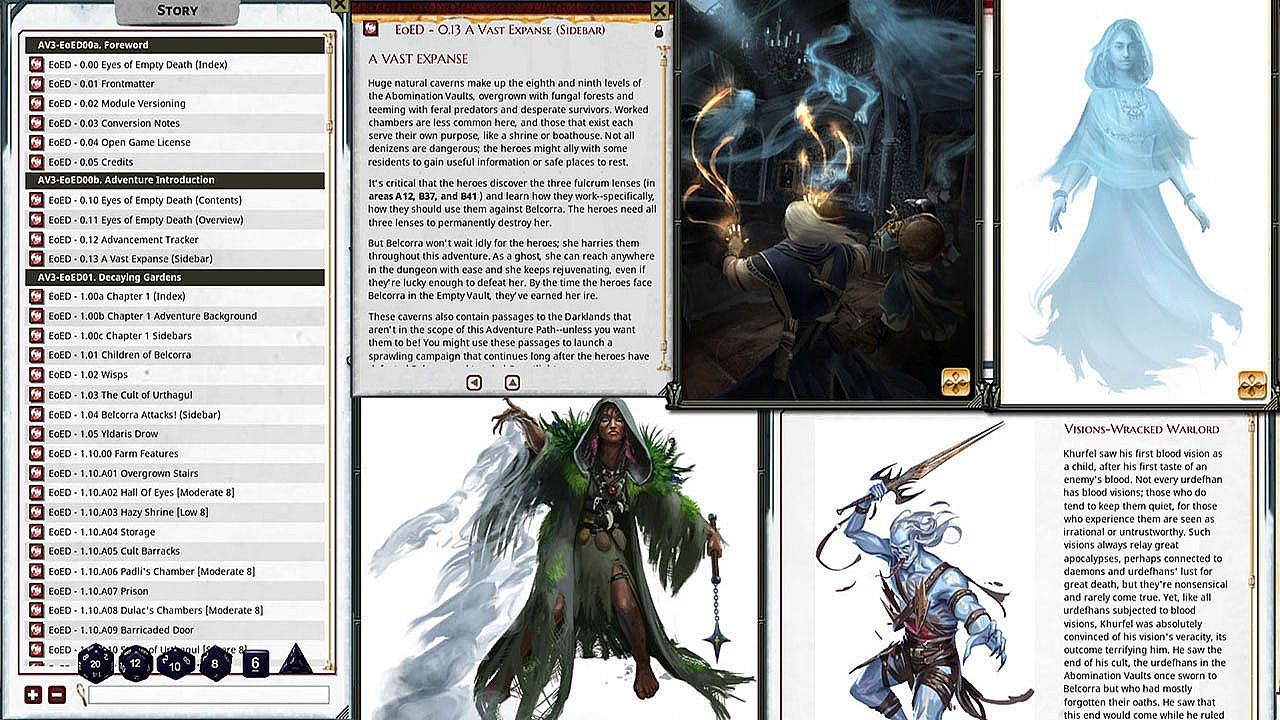 - Individual area descriptions linked to maps, containing new encounters, treasure parcels and descriptions for just that area