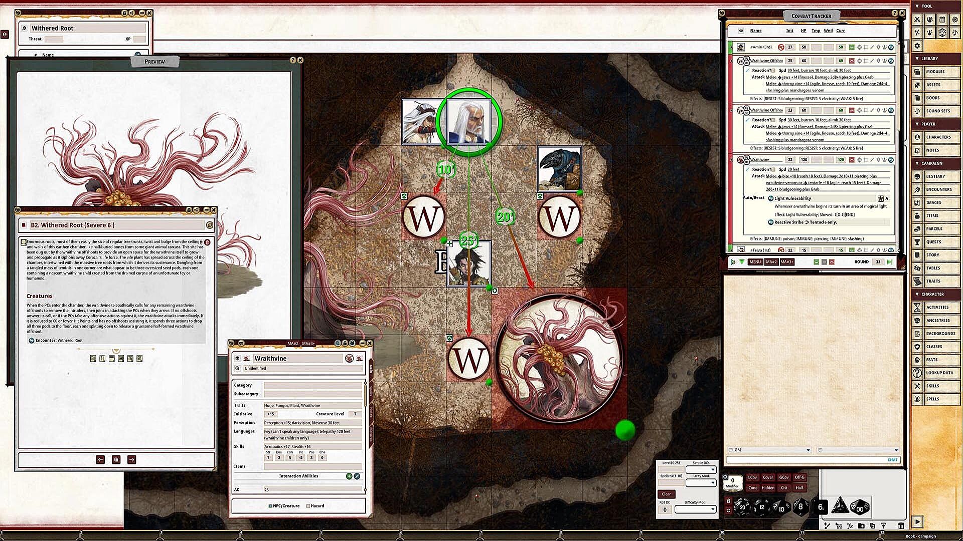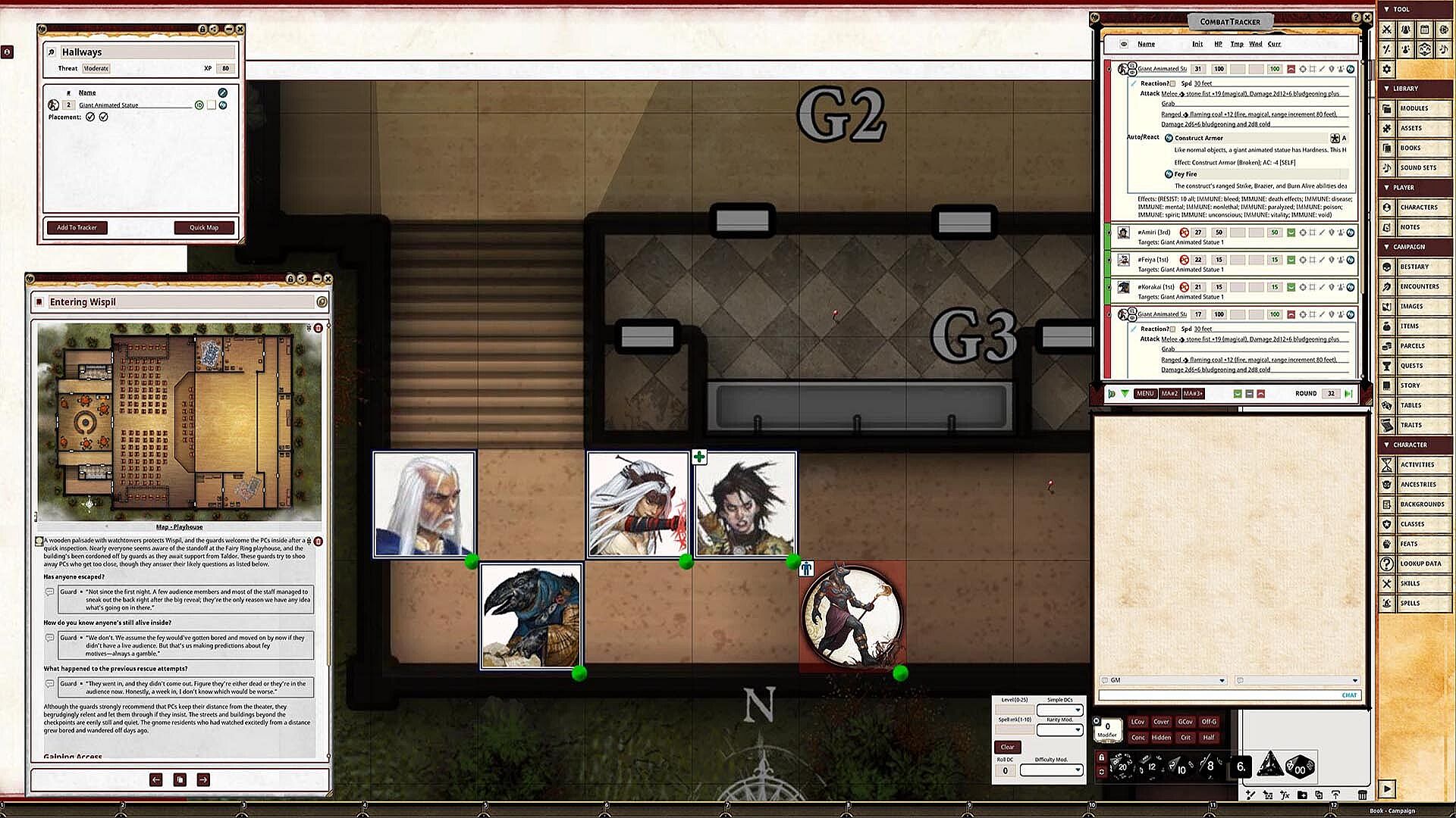 • Tokens for each encounter are all pre-placed in starting locations on the map. You can edit these on the fly.