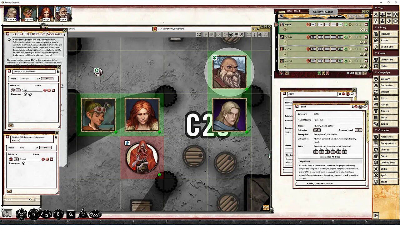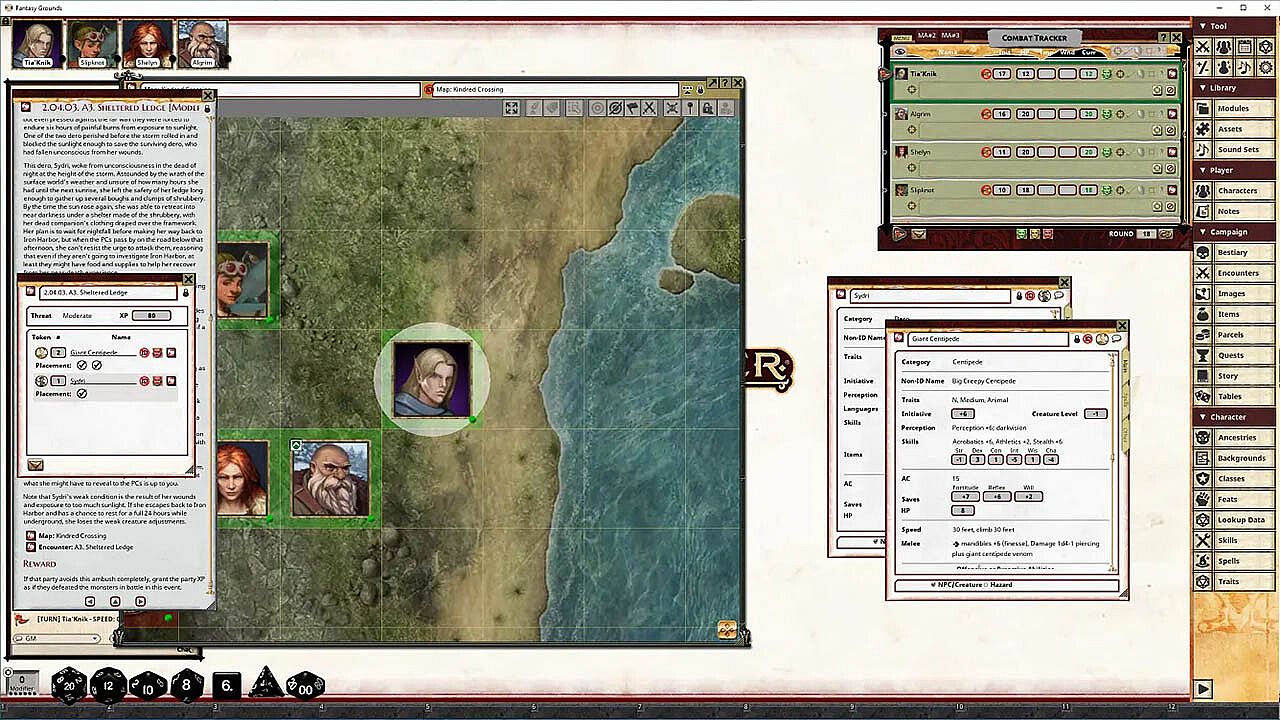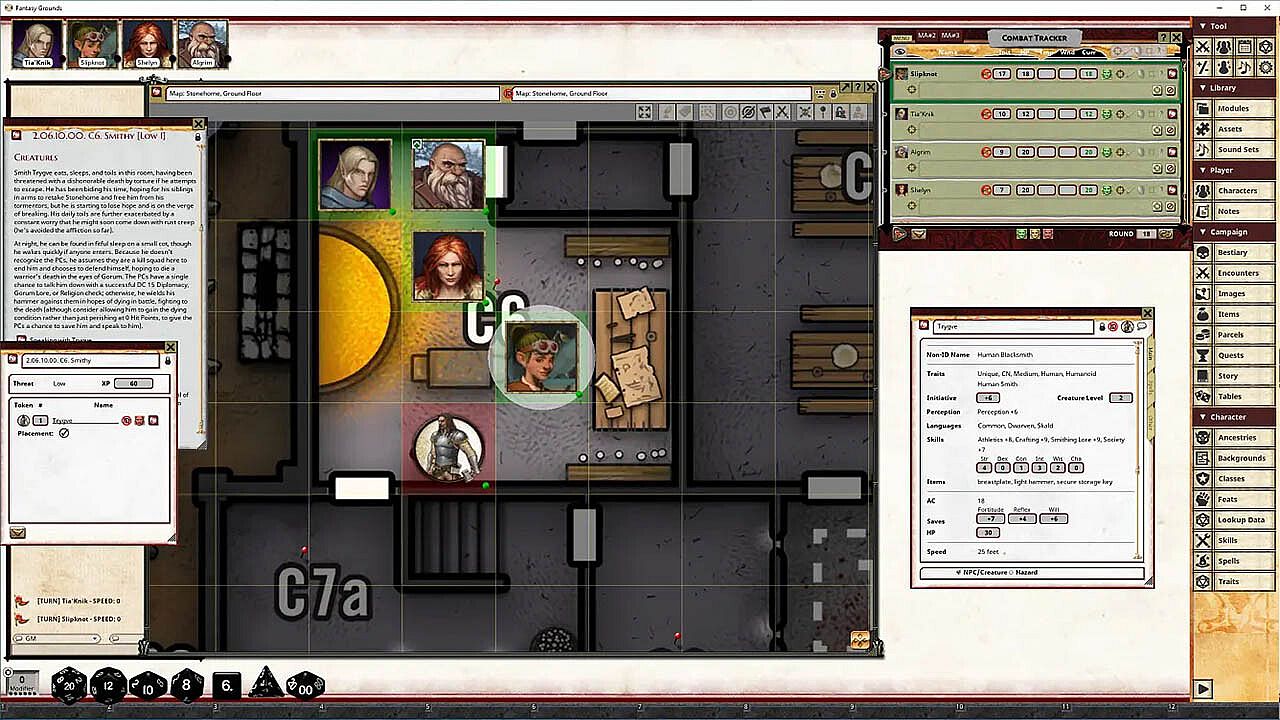 • Tokens for each encounter are all pre-placed in starting locations on the map. You can edit these on the fly.