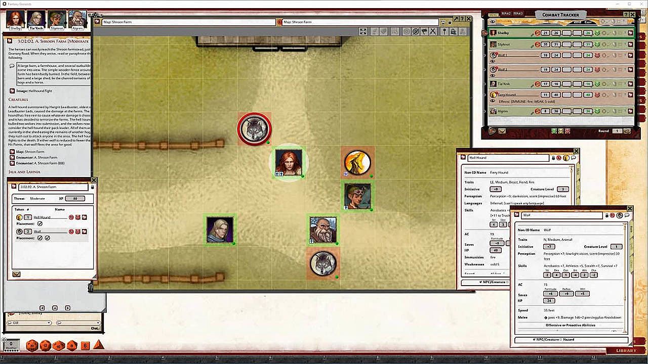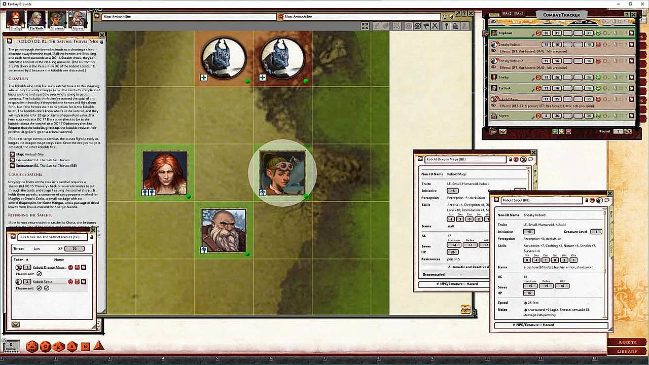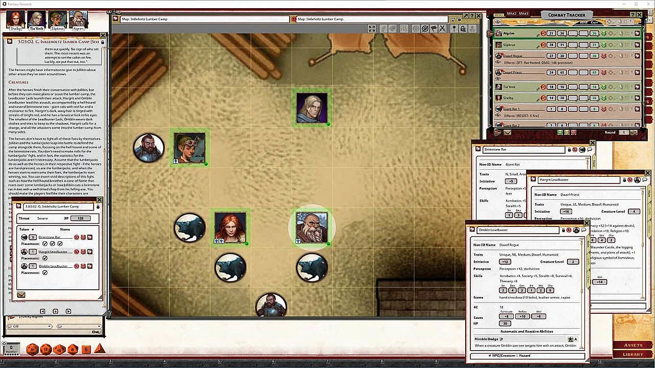 • Tokens for each encounter are all pre-placed in starting locations on the map. You can edit these on the fly.