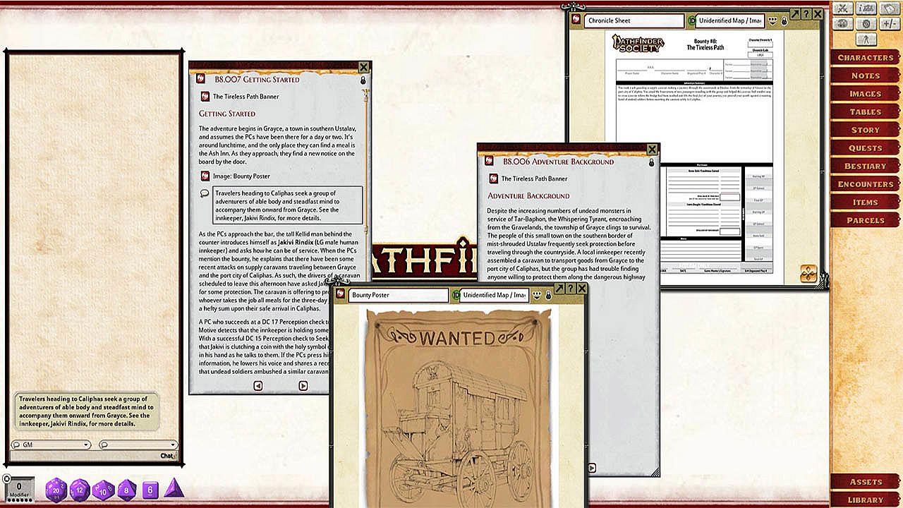 A Pathfinder Bounty designed for Level 1.A caravan is set to depart from the small town of Grayce, but it needs some capable guards. It's up to the PCs to step in and ensure the caravan, and its passengers, reach their destination.