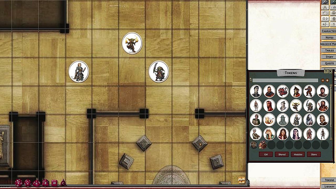 • Tokens for each encounter are all pre-placed in starting locations on the map. You can edit these on the fly.