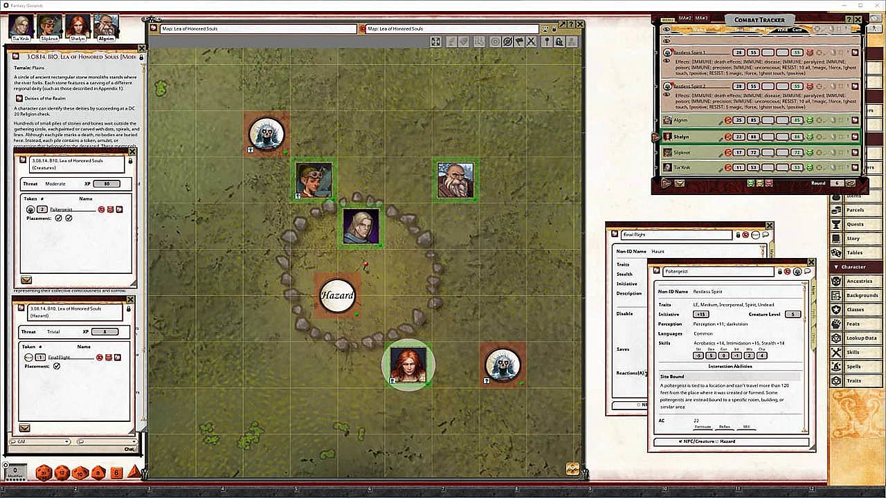 • Tokens for each encounter are all pre-placed in starting locations on the map. You can edit these on the fly.