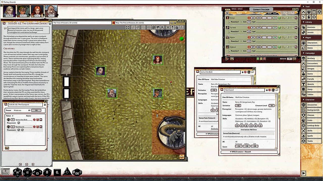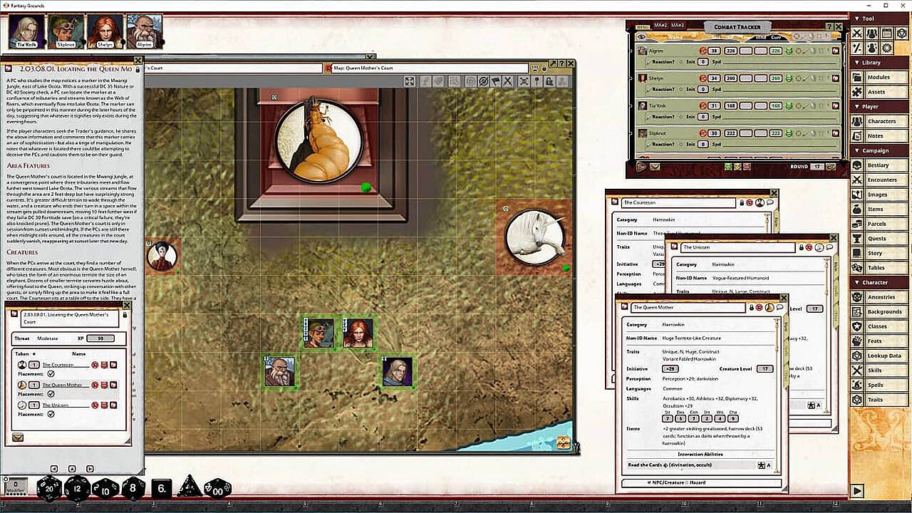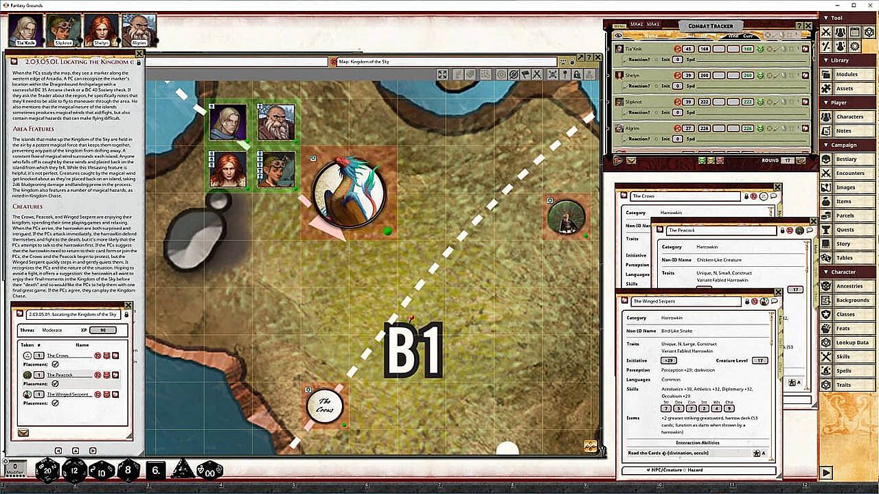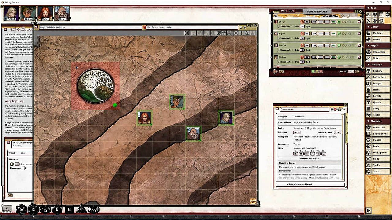• Tokens for each encounter are all pre-placed in starting locations on the map. You can edit these on the fly.
