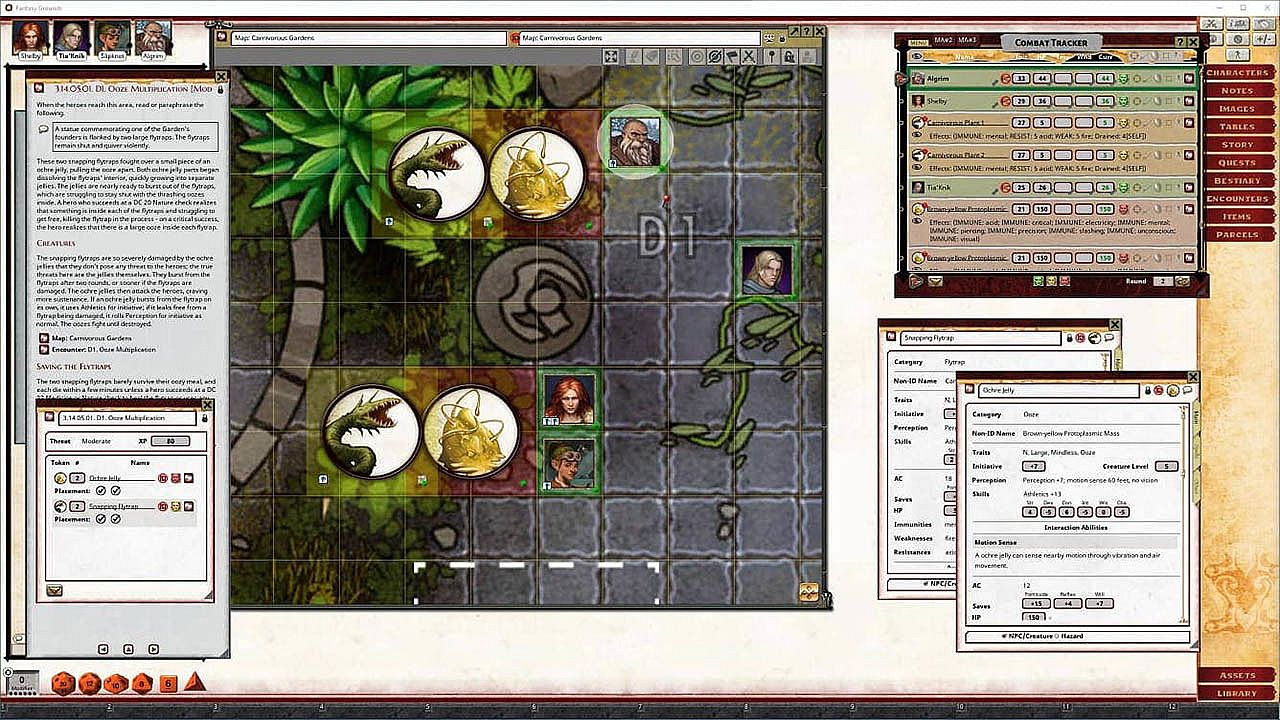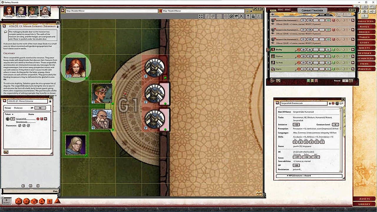 - Tokens for each encounter are all pre-placed in starting locations on the map. You can edit these on the fly.
