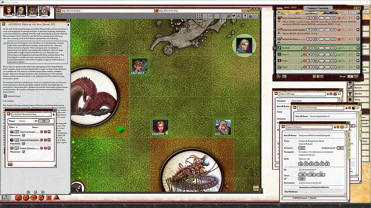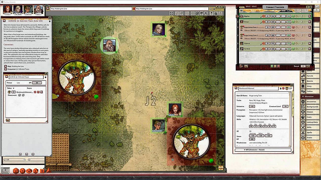 • Tokens for each encounter are all pre-placed in starting locations on the map. You can edit these on the fly.