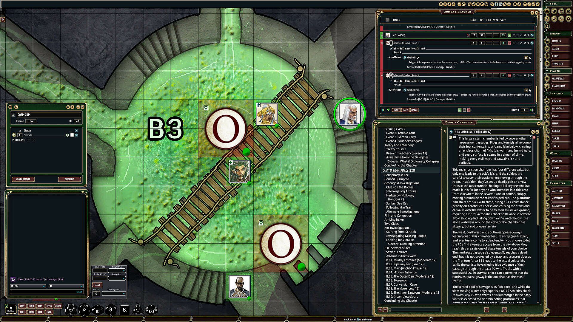 Tokens for each encounter are all pre-placed in starting locations on the map. You can edit these on the fly.