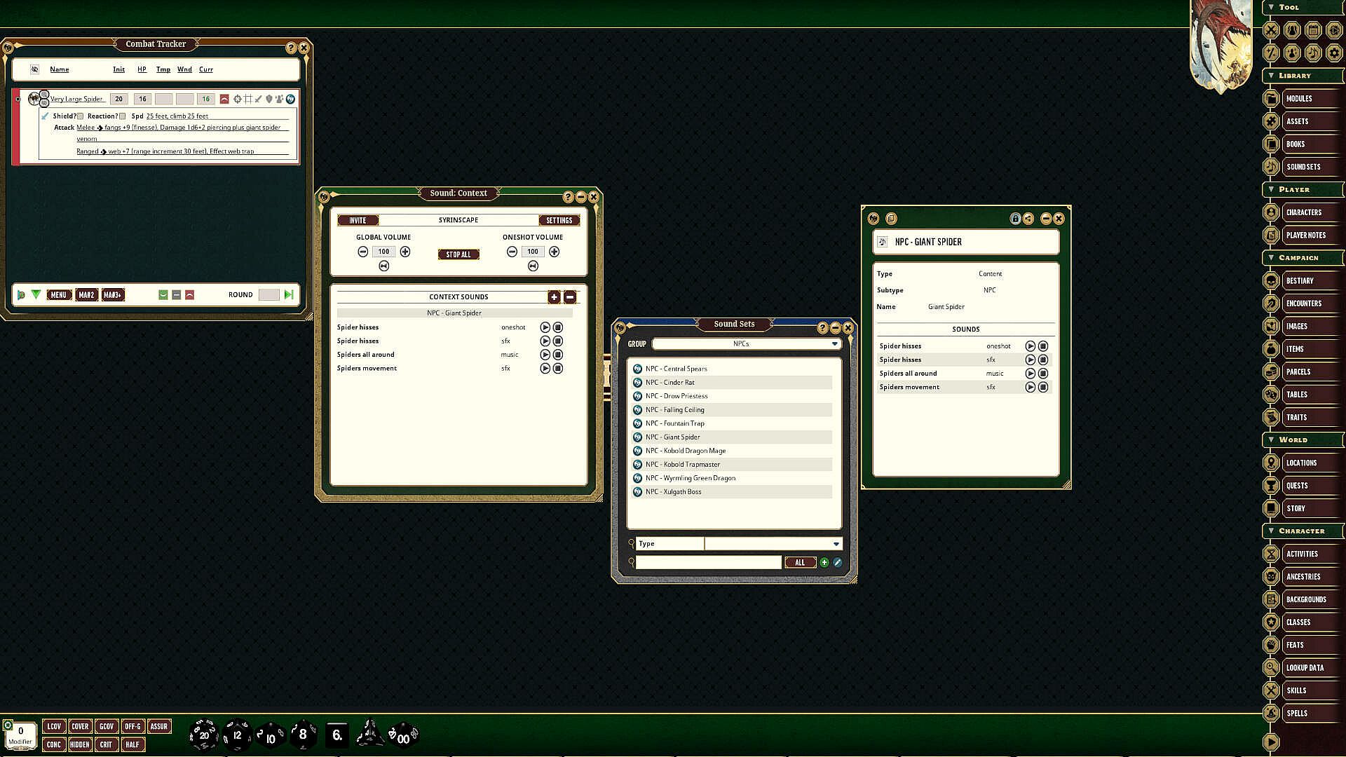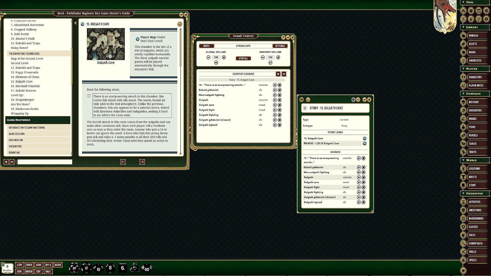 Syrinscape Sound Link Packs for Fantasy Grounds work with your Syrinscape Super Syrin subscription to provide you context-specific sounds for monsters and NPCs in the Pathfinder 2 RPG - Beginner Box (not included).
